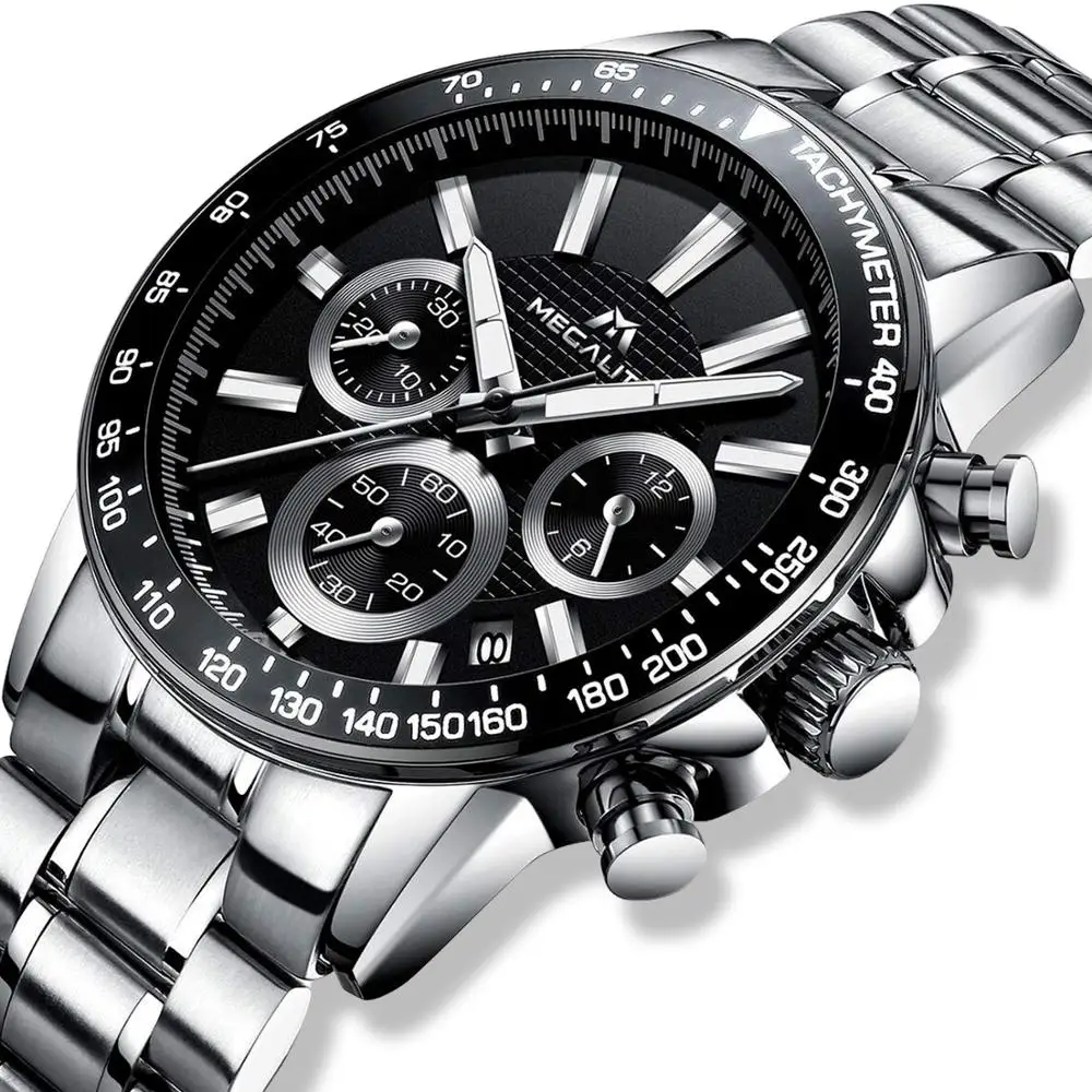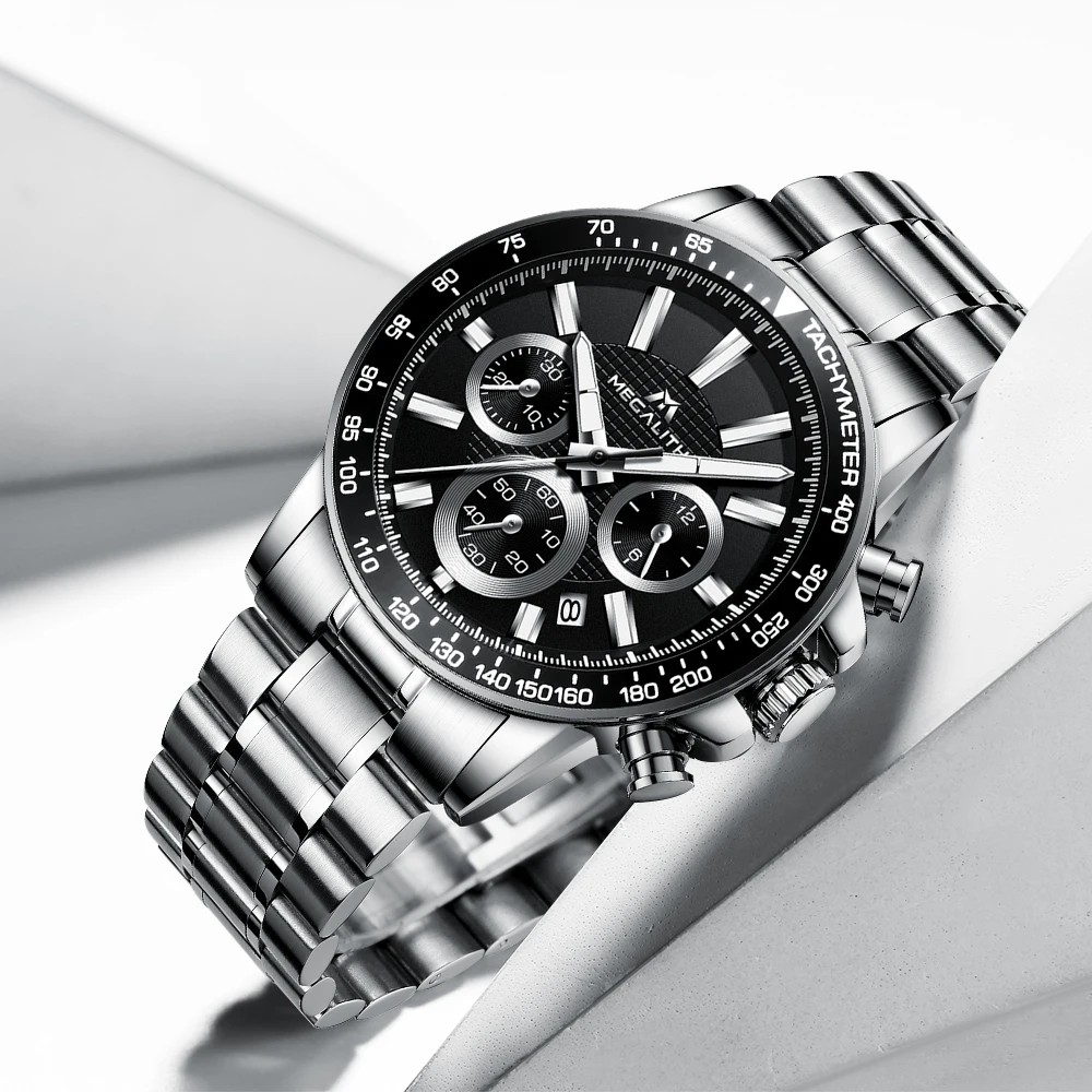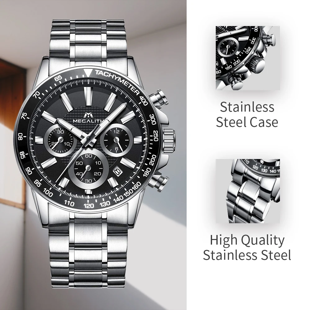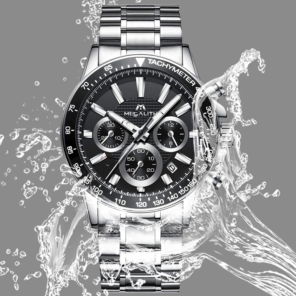 Часы MEGALITH мужские с календарем, водонепроницаемые спортивные повседневные светящиеся, с хронографом из нержавеющей стали