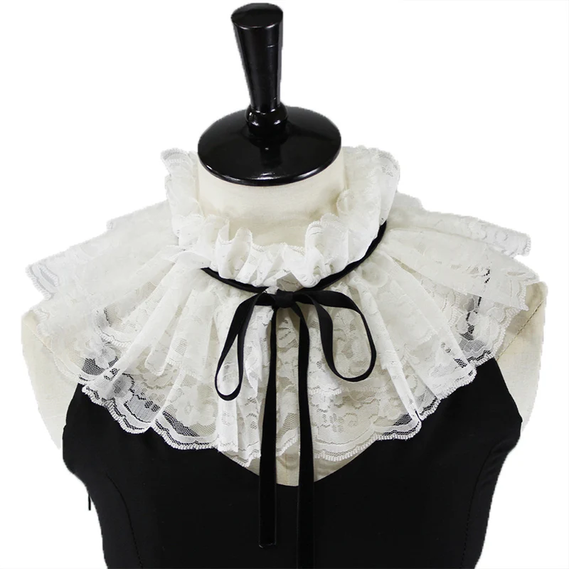 Женский Винтажный кружевной воротник Goth в викторианском стиле со съемными слоями и оборками ручной работы