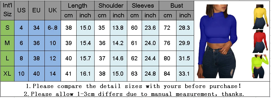 Женская облегающая футболка с высоким воротом, однотонный кроп-Топ с длинным рукавом, красный, синий, желтый пуловер, повседневная одежда, новинка