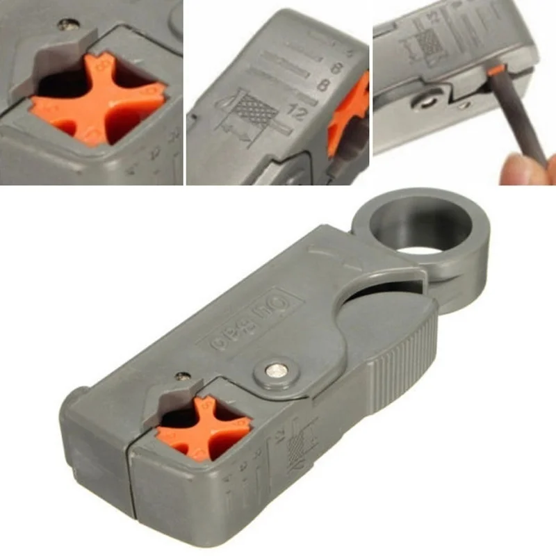 Особенности: 1. Наружные полосы коаксиальных кабелей, подходит для RG-58/6/7/11Кабели. 2. С тремя лезвиями. 3. Полностью регулируемые и сменные лезвия. 4. Простота в эксплуатации: зафиксируйте инструмент над кабелем, поверните по часовой стрелке, затем вытяните нежелательную часть. 5. Изготовлен из ударопрочного материала. 6. Не требует батареек или электричества. 7. Эргономичный дизайн, прост в эксплуатации.