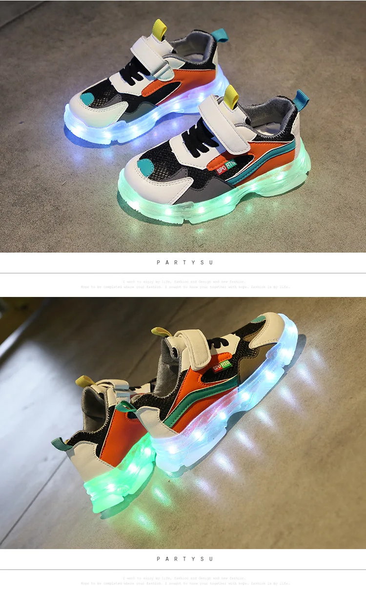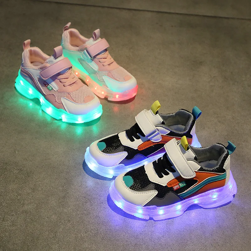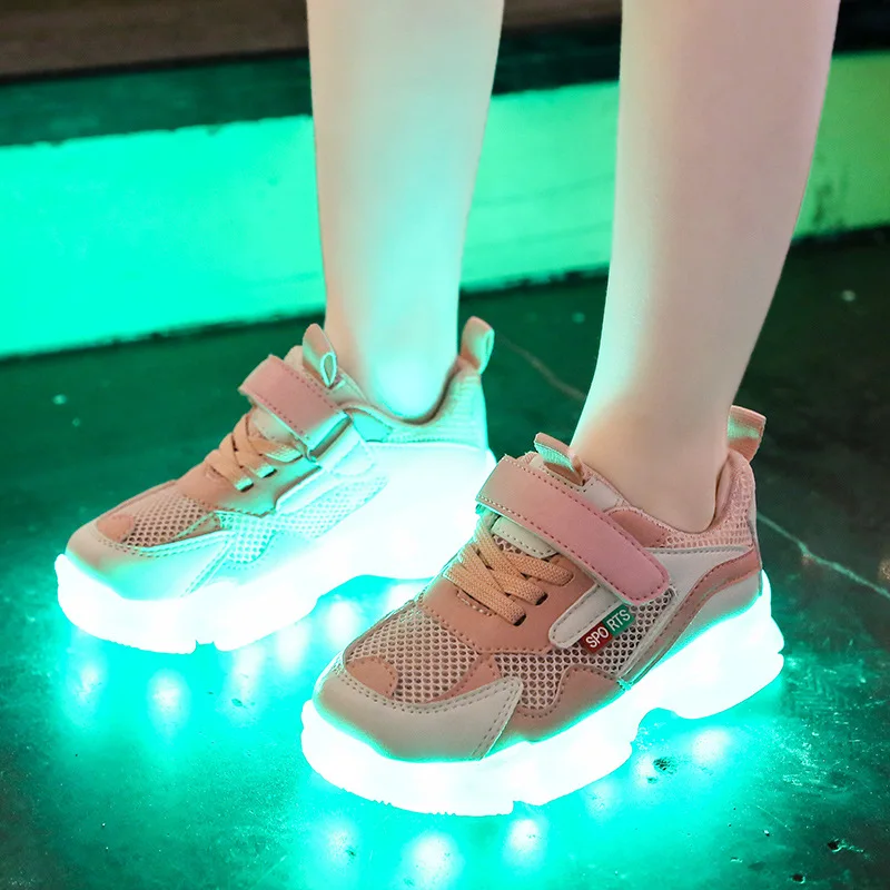 Кроссовки для мальчиков и девочек, светящиеся, Нескользящие, дышащие, повседневные, размер 25-35, туфли со светодиодной подсветкой