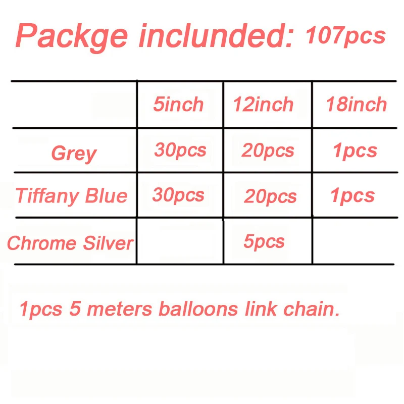 5 дюймов серый шар 30 шт 5 дюймов Тиффани синий шар 30 шт 12 дюймов серый шар 20 шт 12 дюймов Тиффани синий шар 20 шт 12 дюймов хром серебристый воздушный шар 5 шт 18 дюймов серый шар 1 шт 18 дюймов Тиффани синий шар 1 шт