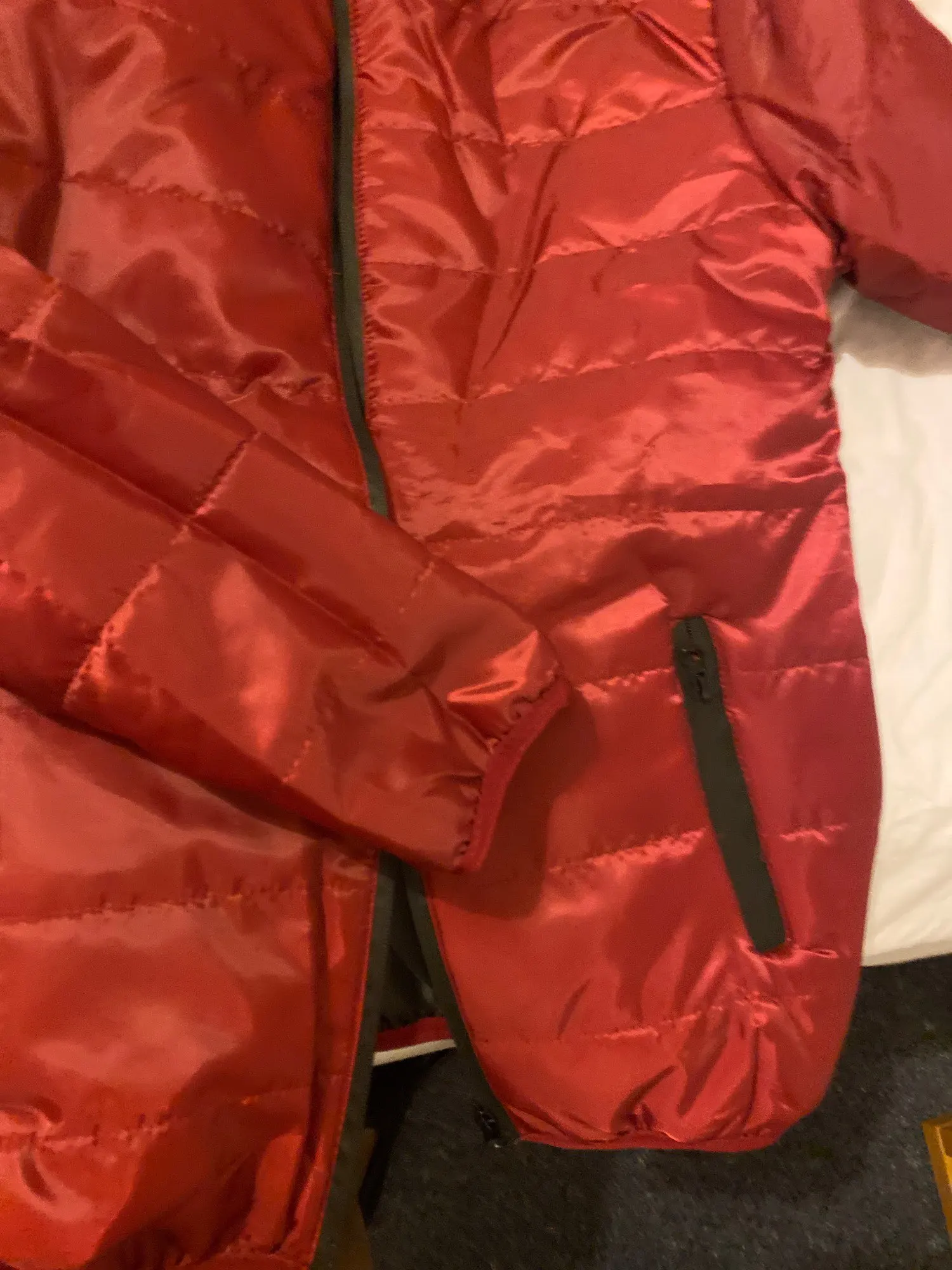 Не покупайте, очень плохое качество. Вы смотрите прямо через заднюю часть пальто. Или они задекларировали там наполнение вниз. Теплое зимнее пальто.... Давайте просто скажите, что тонкая ветровка. Мартовская подкладка правильная, даже если нет. Очень недоволен.