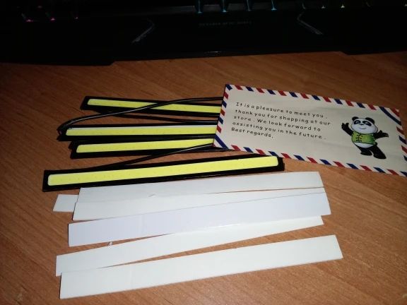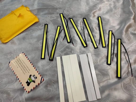 Обычные плашки. Светят сегментировано - внутри много маленьких светиков. Пришли в пупырке, сами плашки, жестяной корпус и двусторонний скотч под размер. Работают все. Для улицы я бы не решился их использовать, а вот для дома хорошо.