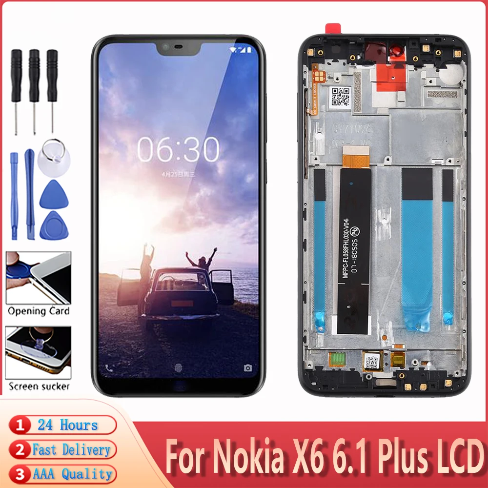 Оригинальный дисплей для Nokia 6,1 Plus TA-1099 TA-1083, сменный сенсорный ЖК-экран с дигитайзером и рамкой для Nokia X6 LCD