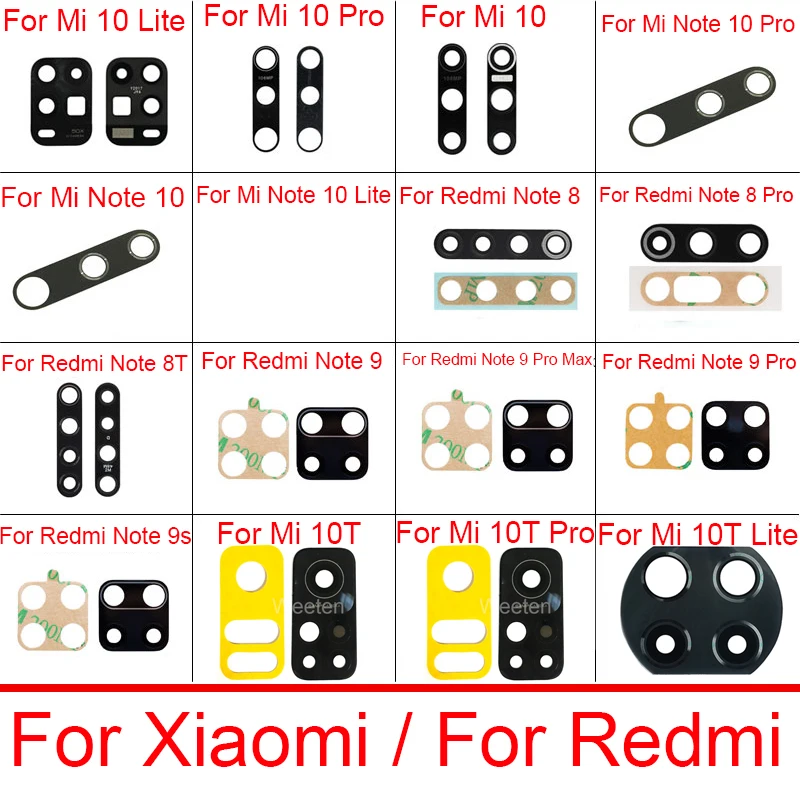 Стеклянный объектив для задней камеры Xiaomi Mi 10 10T Lite Note 10 Pro, основной объектив для задней камеры Redmi Note 8 9 8T 9S Pro Max, запчасти