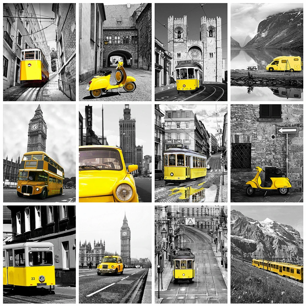 5D полноразмерная алмазная живопись, квадратнаякруглая черно-белая Алмазная вышивка, автомобиль, городской пейзаж, вышивка крестиком, мозаика, картина, искусство