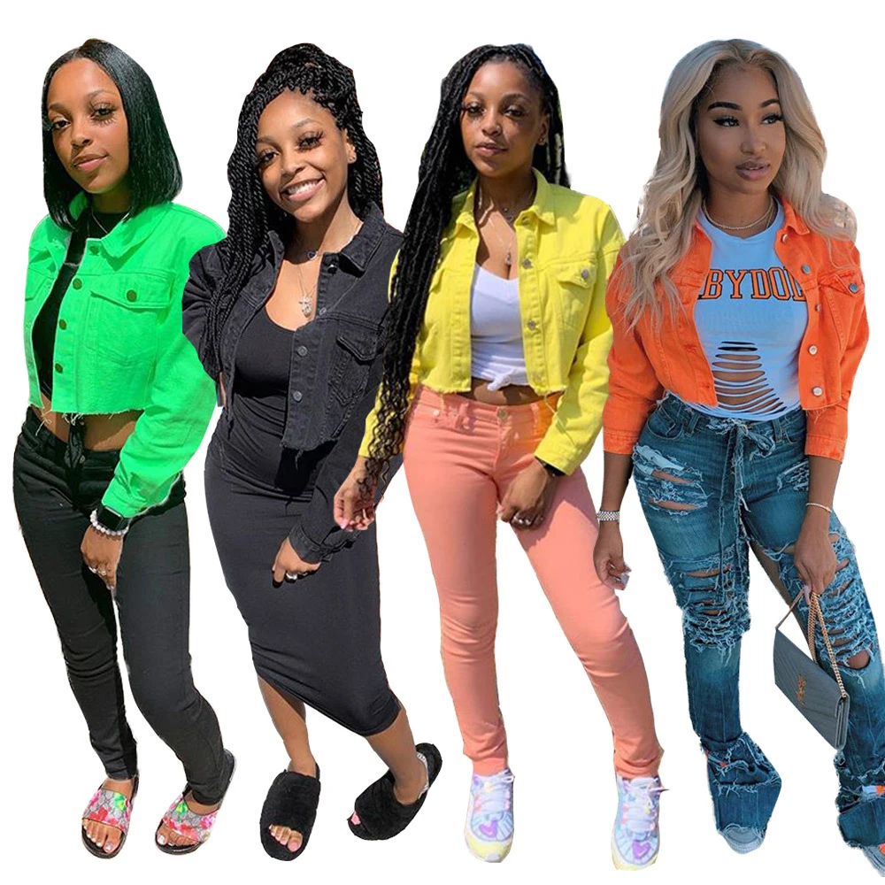 Женская короткая куртка из денима, с отложным воротником, на осеньзиму