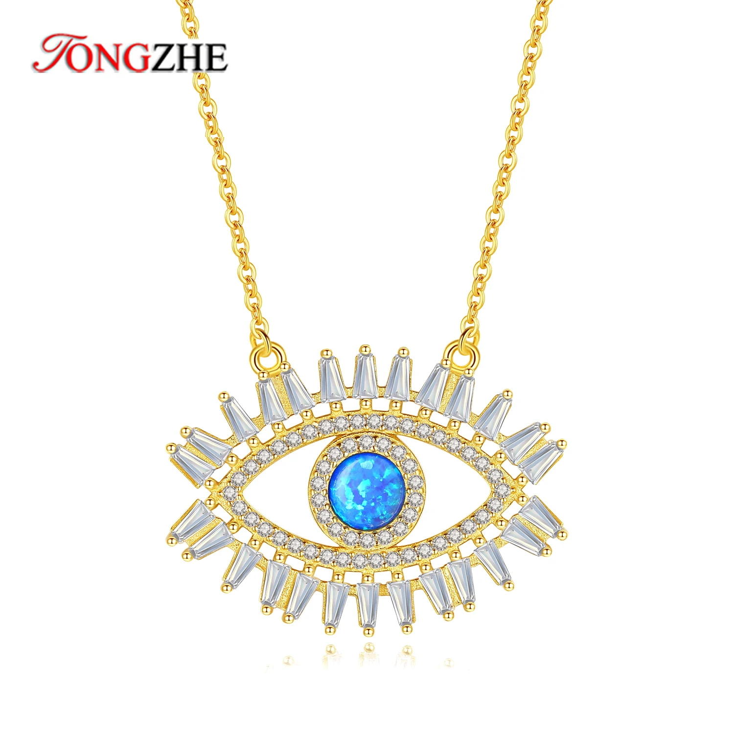Женское Ожерелье TONGZHE, ожерелье из стерлингового серебра 925 пробы с кубическим цирконием и голубым глазом, изысканное турецкое ювелирное изделие
