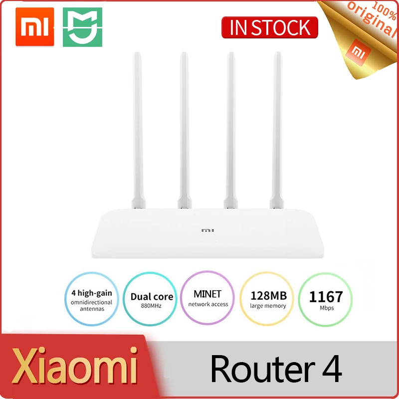 Часто задаваемые вопросы: поддерживает ли он английский? Его прошивка является китайской и может быть изменена на английский язык через приложение Xiaomi WiFi или приложение Mijia. Оригинальный двухдиапазонный беспроводной маршрутизатор Xiaomi Mi WiFi 4Поставляется с новейшей технологией 802.11ac WiFi, которая в 3 раза быстрее, чем скорость беспроводной сети N, и обеспечивает комбинированную скорость беспроводной передачи данных до 1167 Мбит/с. С 867 Мбит/с Скорость беспроводного соединения по кристально чистым) Wi-Fi 5 ГГц полосы и 300 Мбит/с в диапазоне 2,4 ГГц, xiao Mi WiFi двухдиапазонный беспроводной маршрутизатор 4 является отличной заменой для бесшовной потоковой передачи HD, онлайн-игр и других задач с пропускной способностью. Кроме того, четыре мощных внешних антенны с высоким коэффициентом усиления обеспечивают более широкое покрытие и лучшую производительность при подключении большого количества устройств, что делает его идеальным даже для большого дома! Основные характеристики:Широкий охват, сильный сигналУмное устройство, легкий доступ к сетиДвухдиапазонный стандарт 802.11n + acБольшая вспышка, поддержка богатых функцийДвухъядерный процессор, более быстрый и стабильный