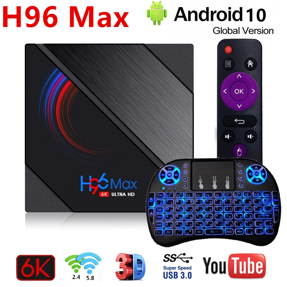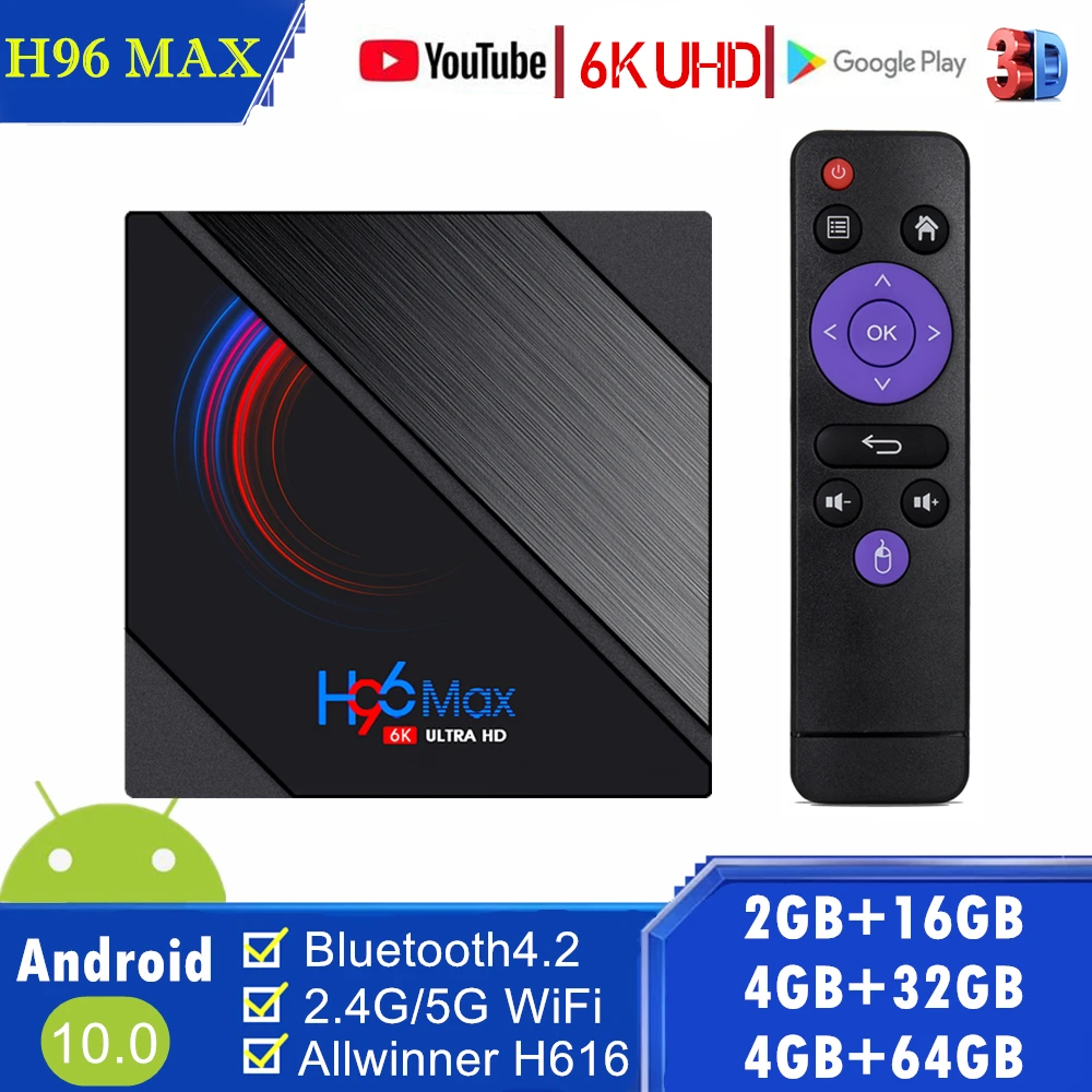 Приставка Смарт-ТВ H96 Max H616, Android 10, поддержка 6K, 3D Youtube, Google Play, 4 Гб, 32 ГБ64 ГБ, медиаплеер 2021