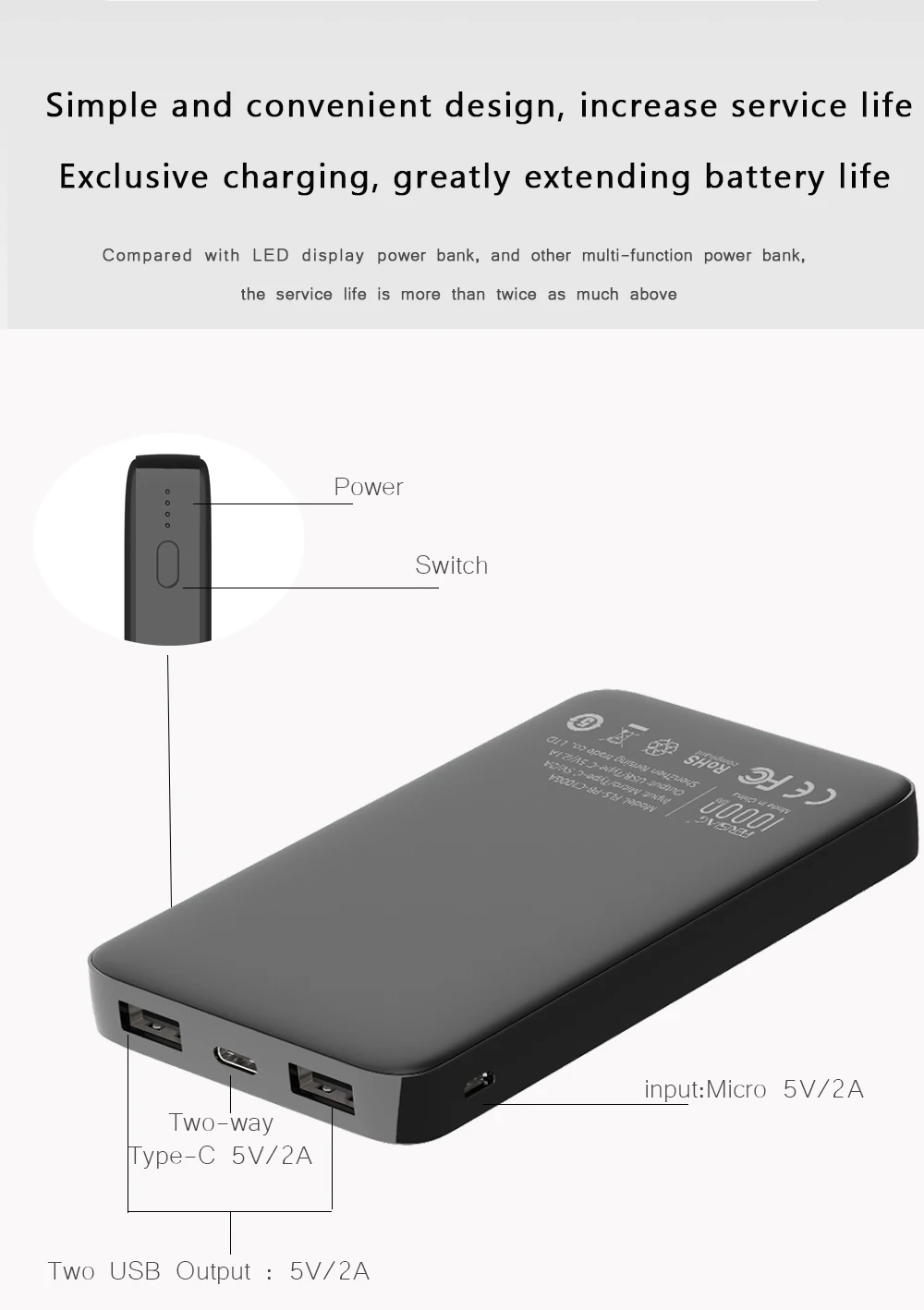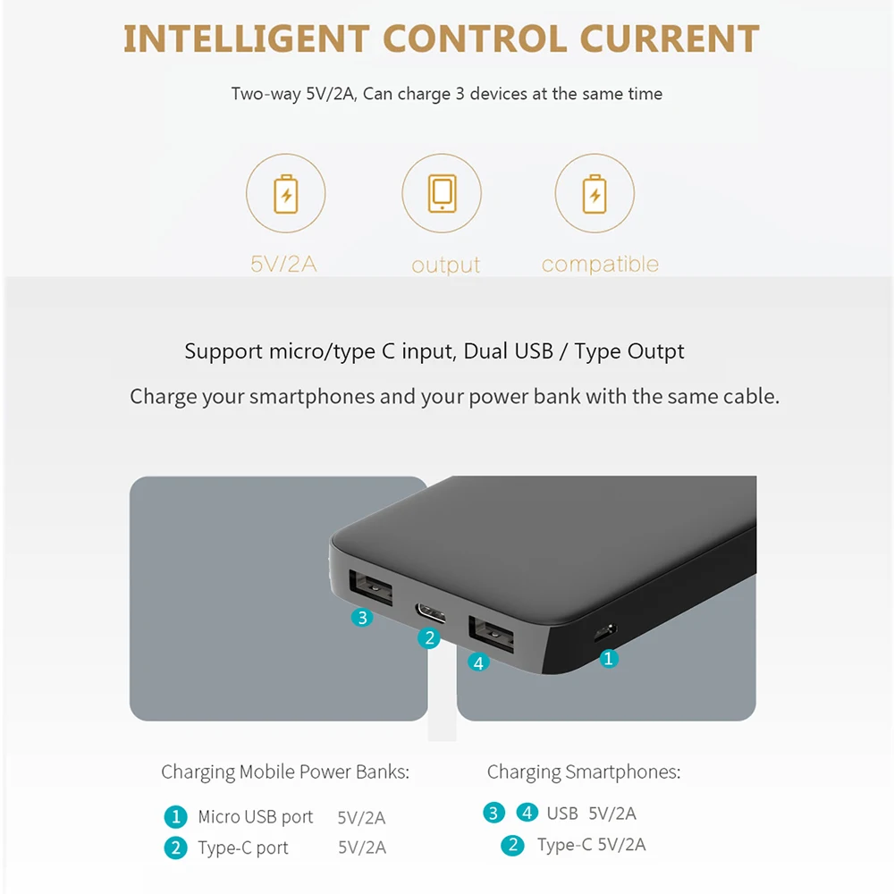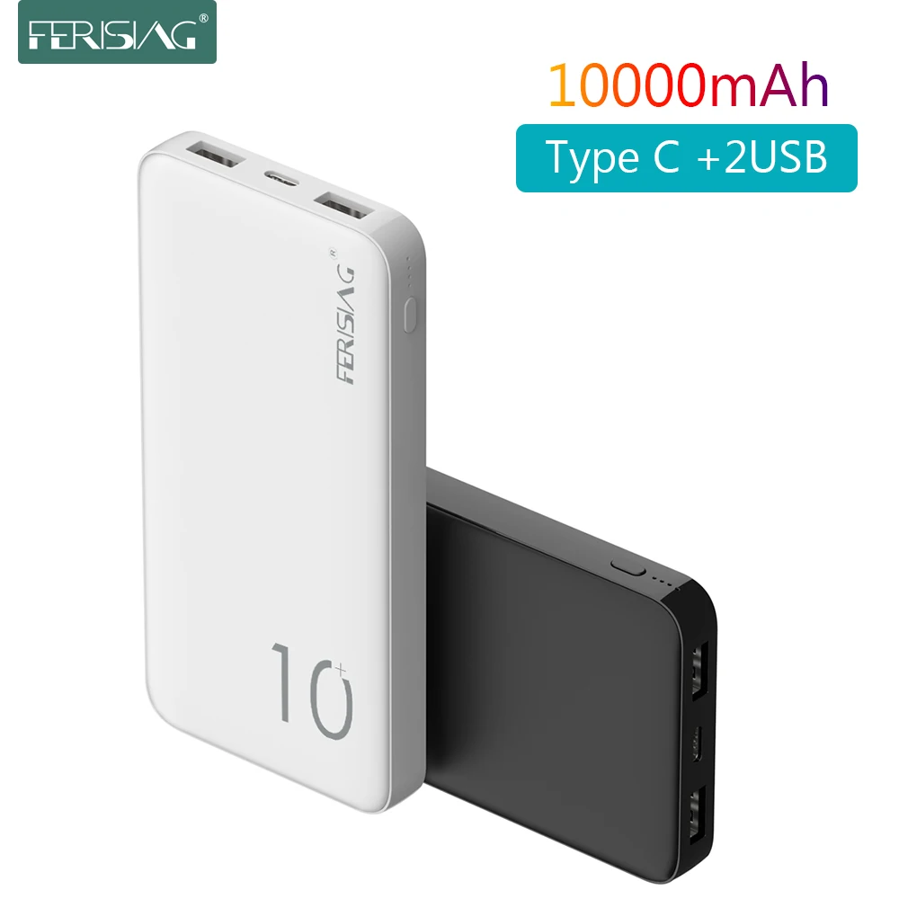 Внешний аккумулятор FERISING, ёмкость 10000мАч, 2выходных портаUSB и порт USBC, подойдёт для XiaomiMi910