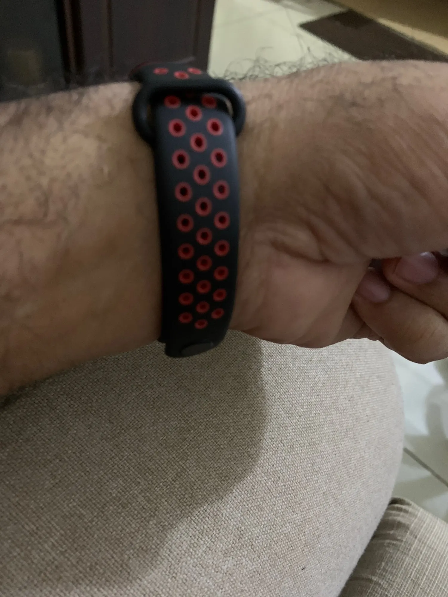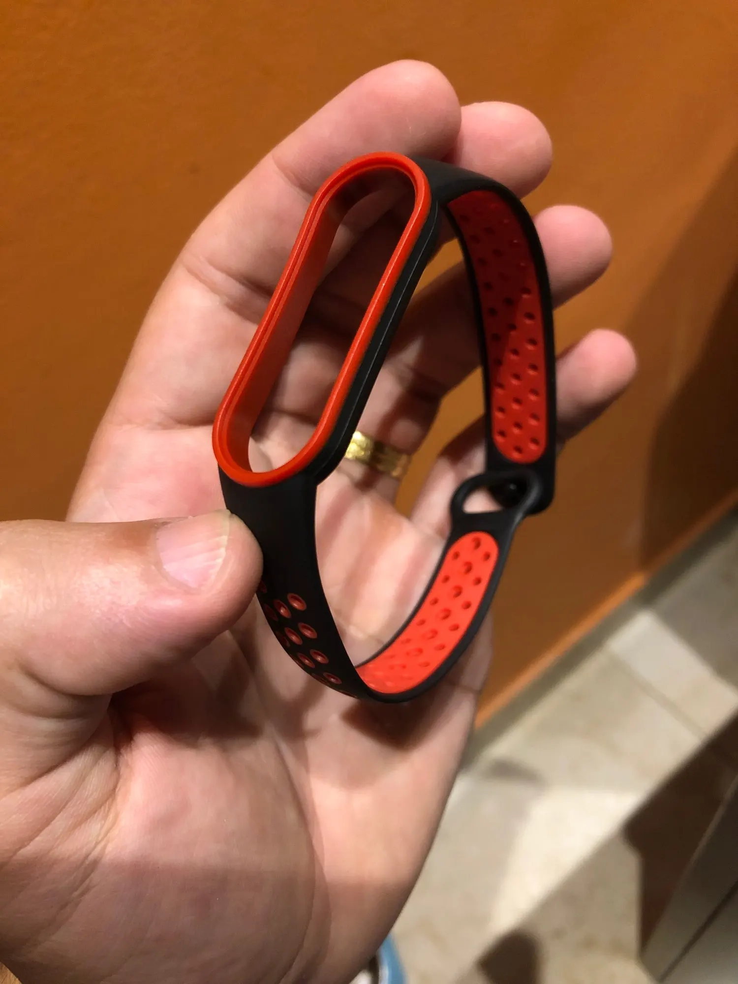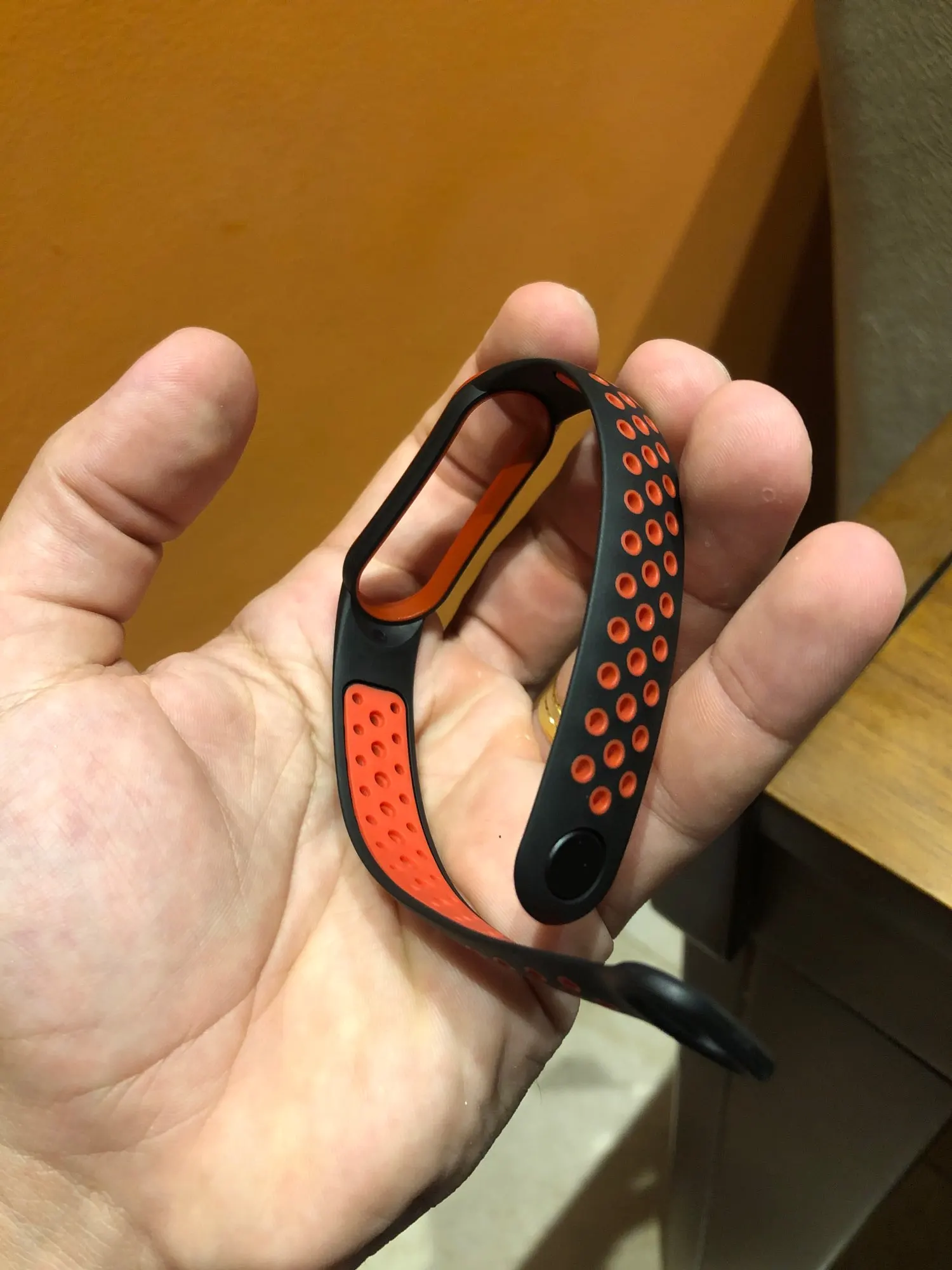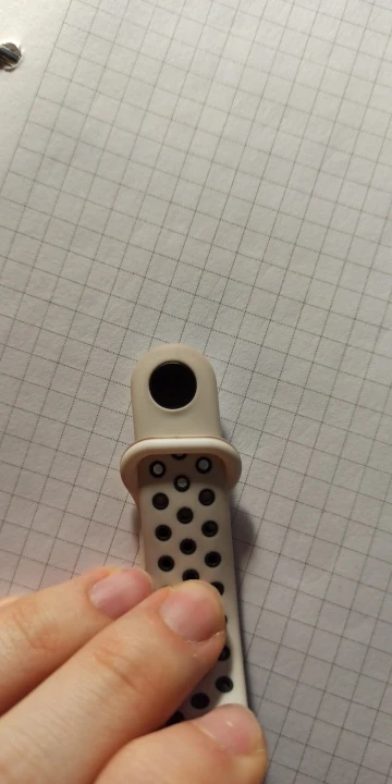 Отличный браслет . Чуть жёстче чем оригинал . Благодаря большому количеству отверстий рука не потеет