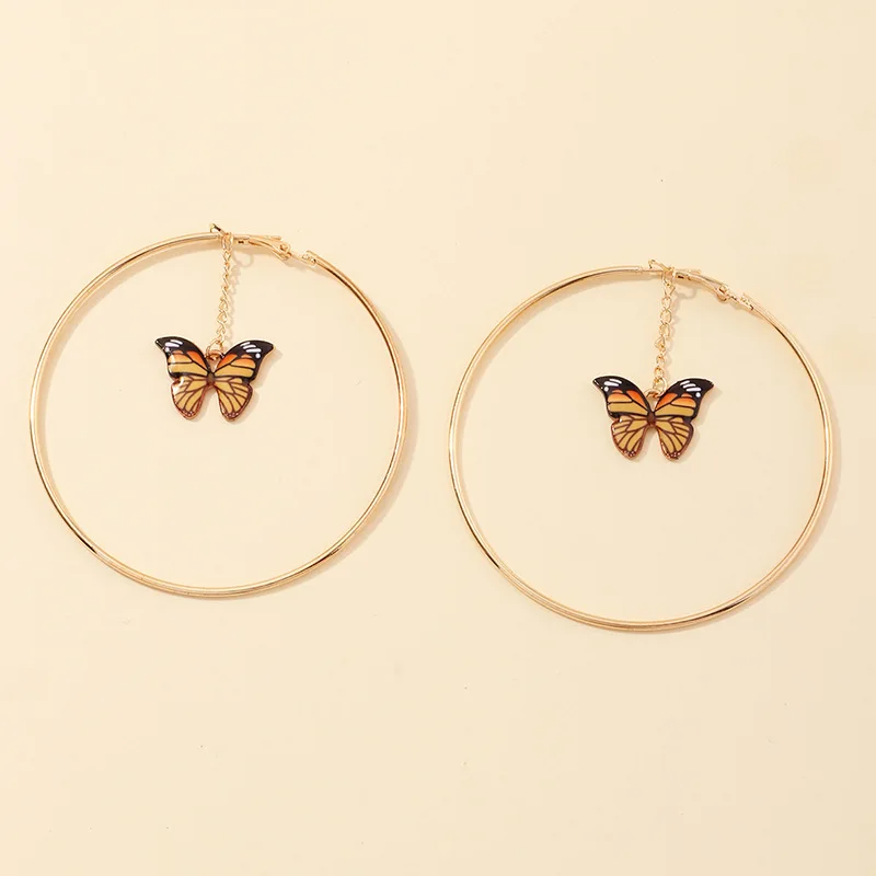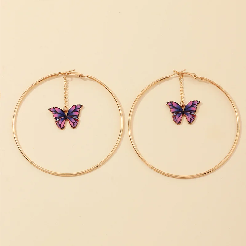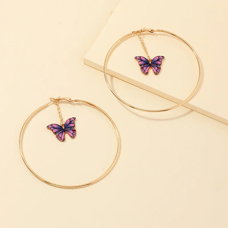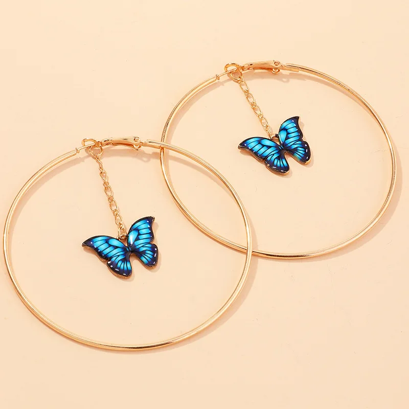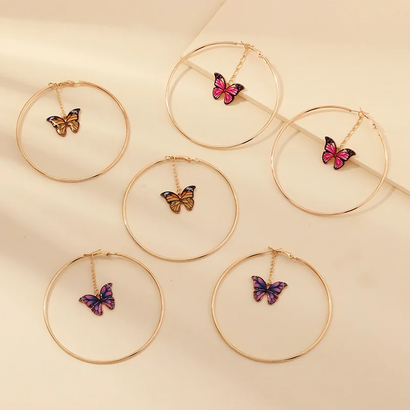 Женские полые серьги, европейские, французские, круглые, с подвеской в виде бабочки, корейские серьги, ювелирные изделия для девочек, 2020