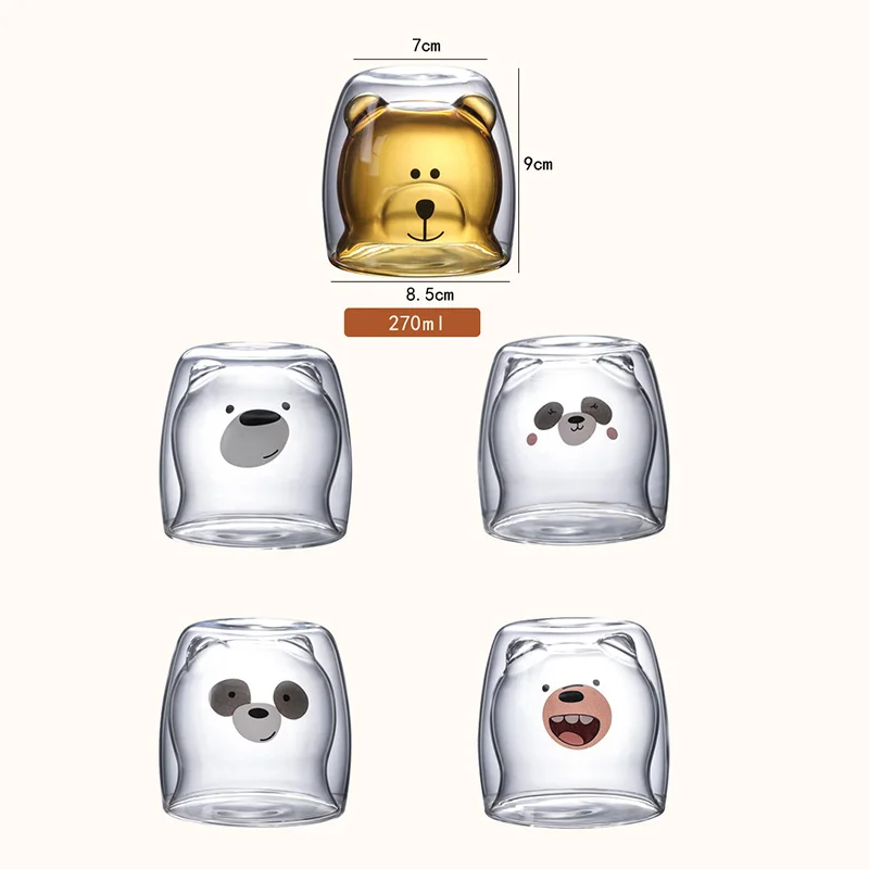 Стеклянная кружка с двойными стенками, 270 мл, кружки в форме мишки...