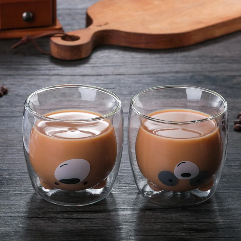3D милая панда Медведь инновационная стеклянная чашка es термостойкая кофейная чашка с двойными стенками утренняя чашка для молока сока Стеклянная Кружка Холодная посуда для напитков