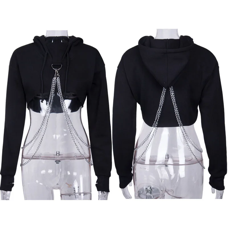 Женский пуловер с капюшоном и цепочкой, в готическом стиле