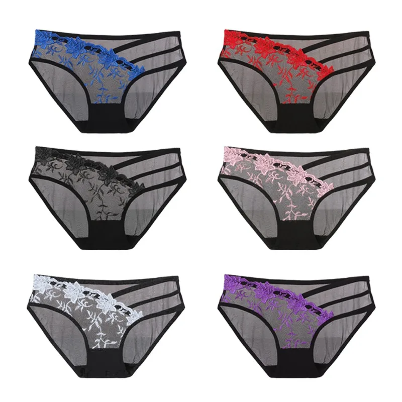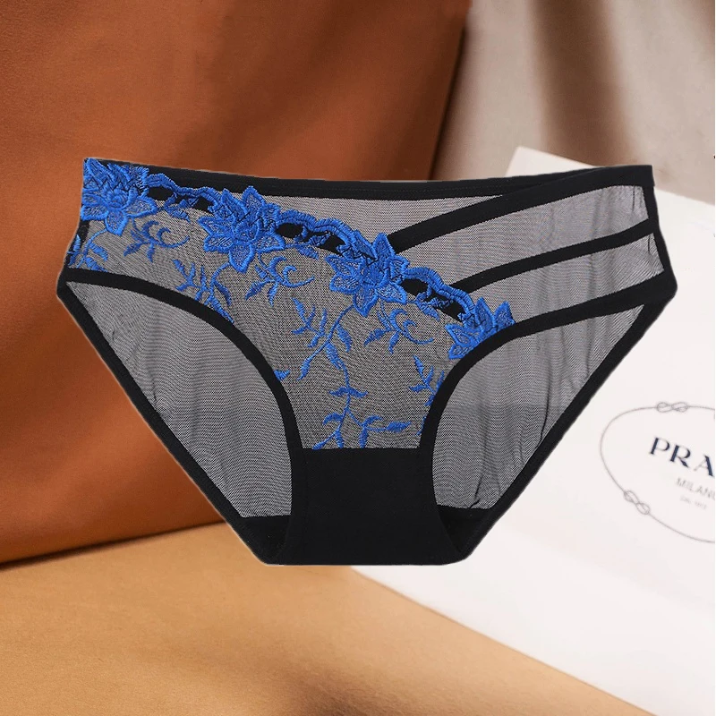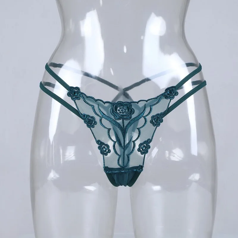 Стринги женские сетчатые, с вышивкой, прозрачные
