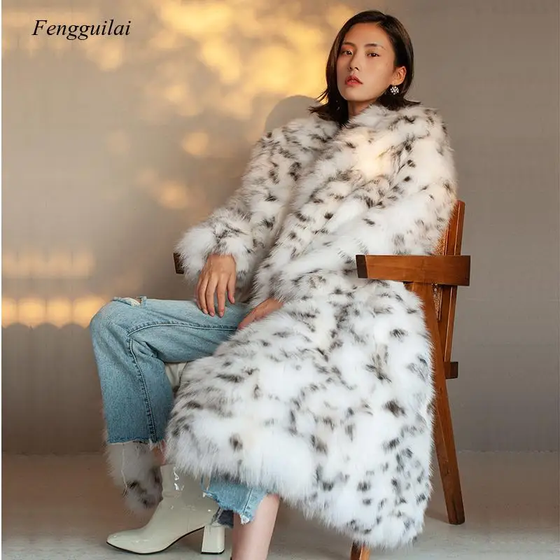 Шуба из искусственного лисьего меха, Длинная зимняя теплая шуба большого размера в европейском и американском стиле с черным леопардовым принтом