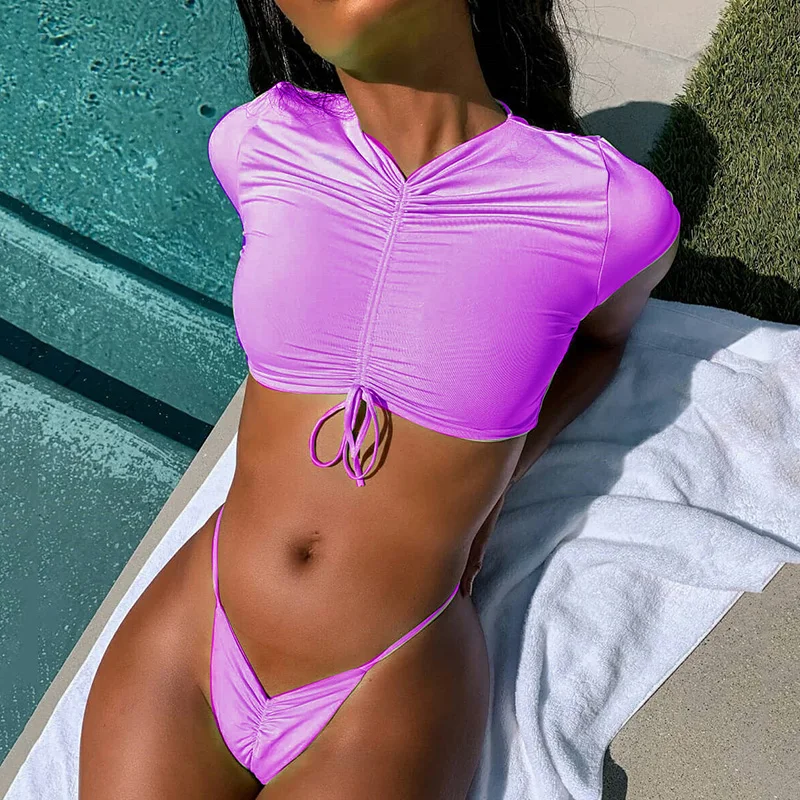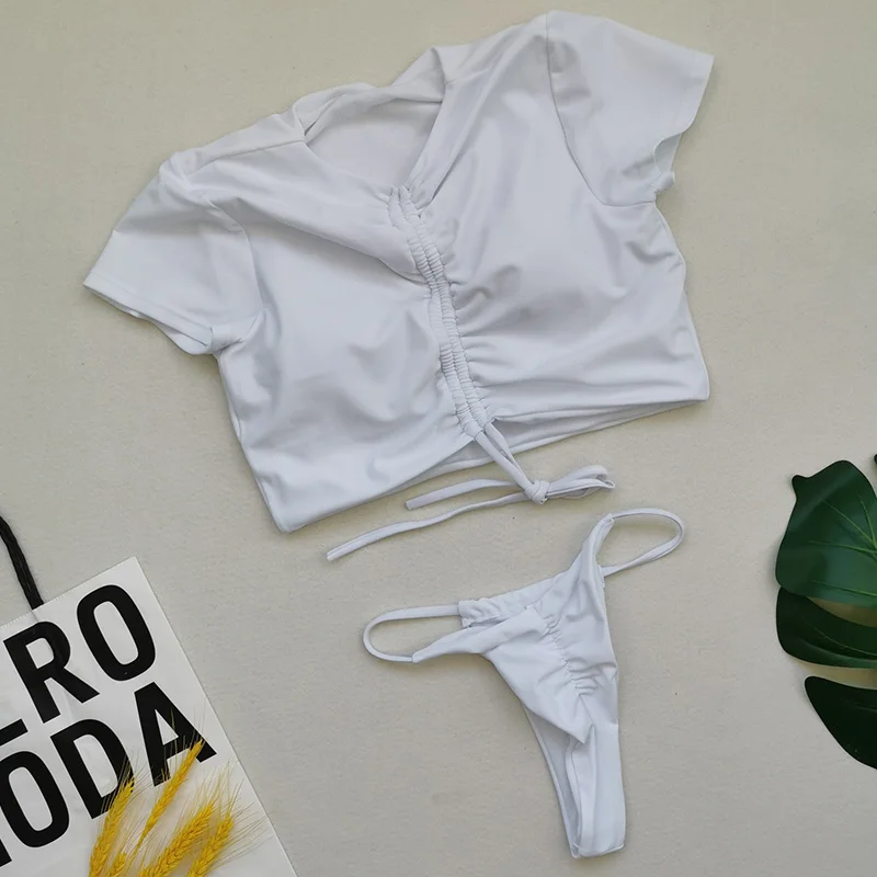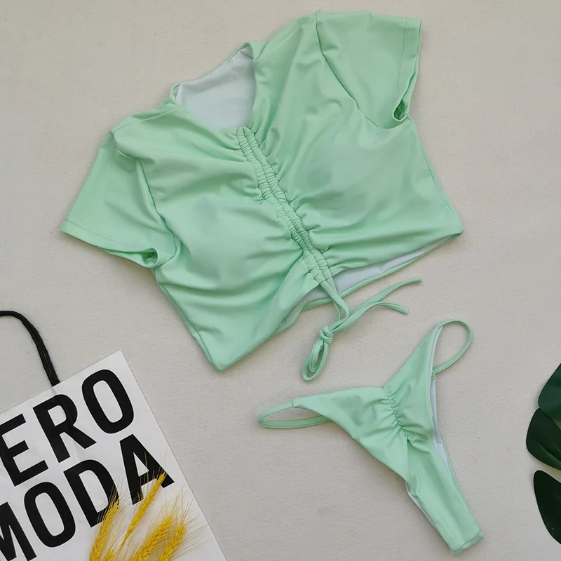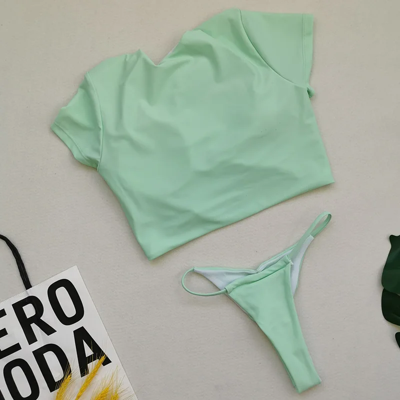 Новый 2021 высокого покроя с коротким рукавом бикини Для женщин Плавание одежда женский Плавание, костюм комплекты одежды из двух частей набор микро-бикини стринги ванный комплект Плавание леди