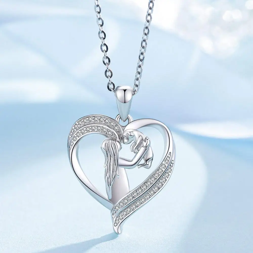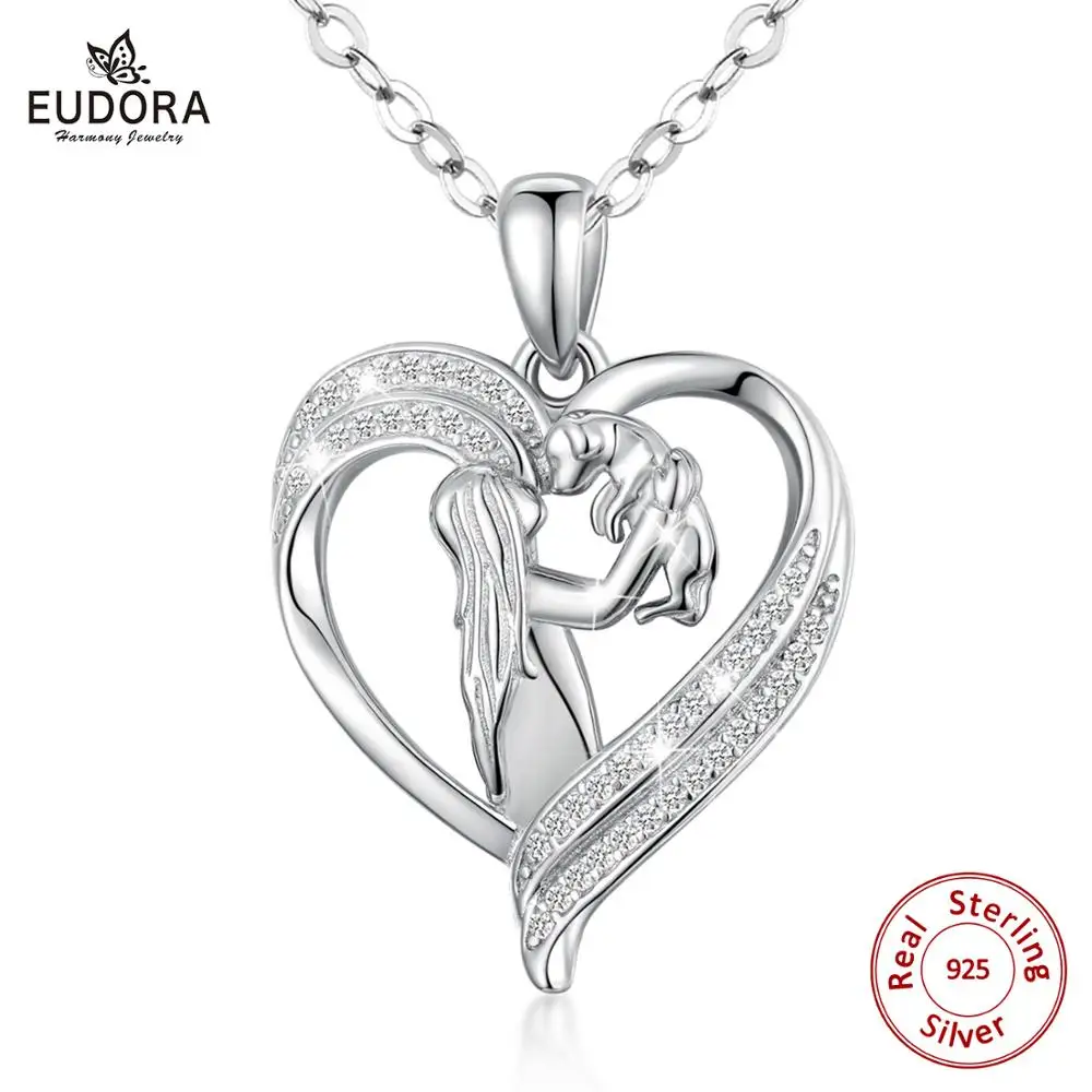 Ожерелье EUDORA из серебра 925 пробы в форме сердца для мамы и ребе...