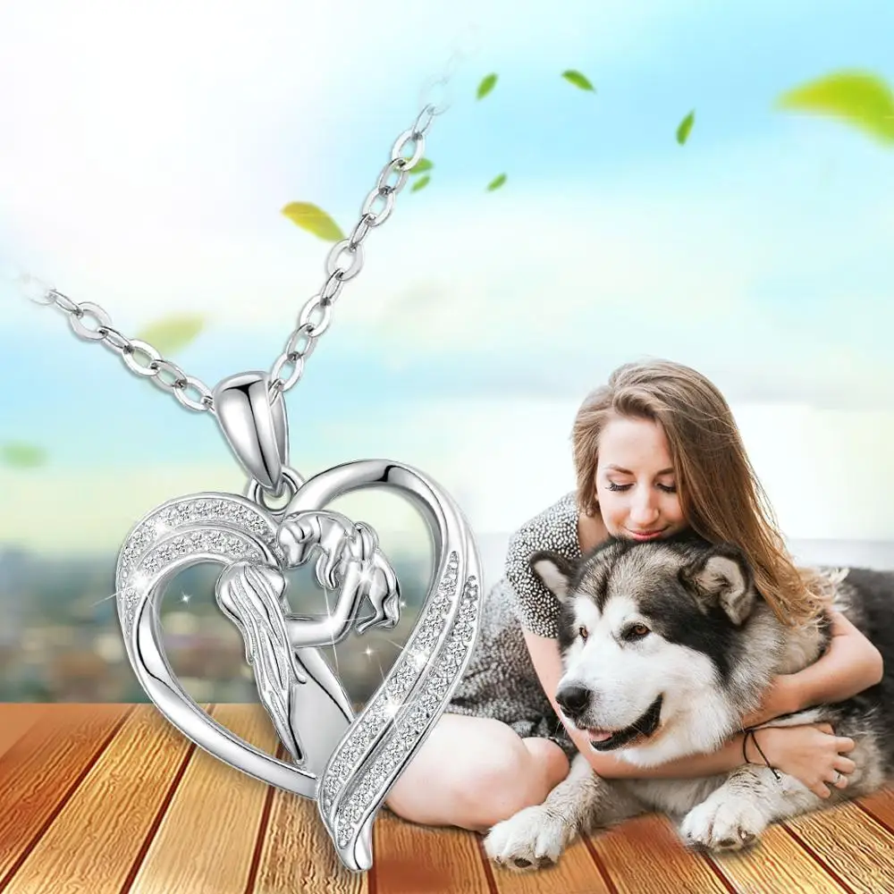 Ожерелье женское из серебра 925 пробы с кулоном в виде собаки и дев...