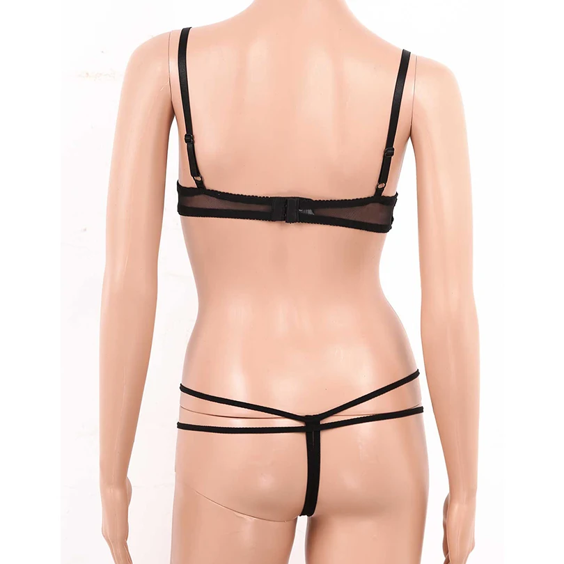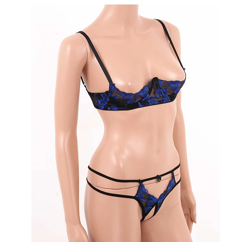 Комплект женского эротического нижнего белья, кружевной бюстгальтер на косточках с открытой чашкой и открытой промежностью