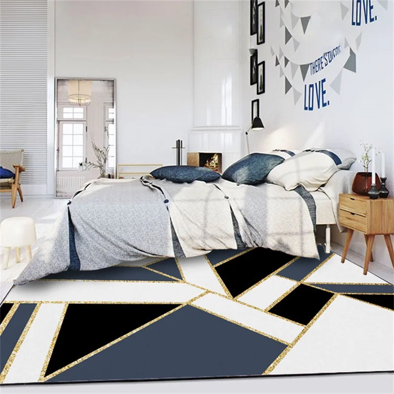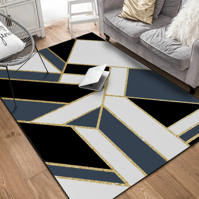 Модные тяжелые металлические синие геометрические черные белые мраморные золотые полосы для спальни гостиной напольный коврик ковер на заказ