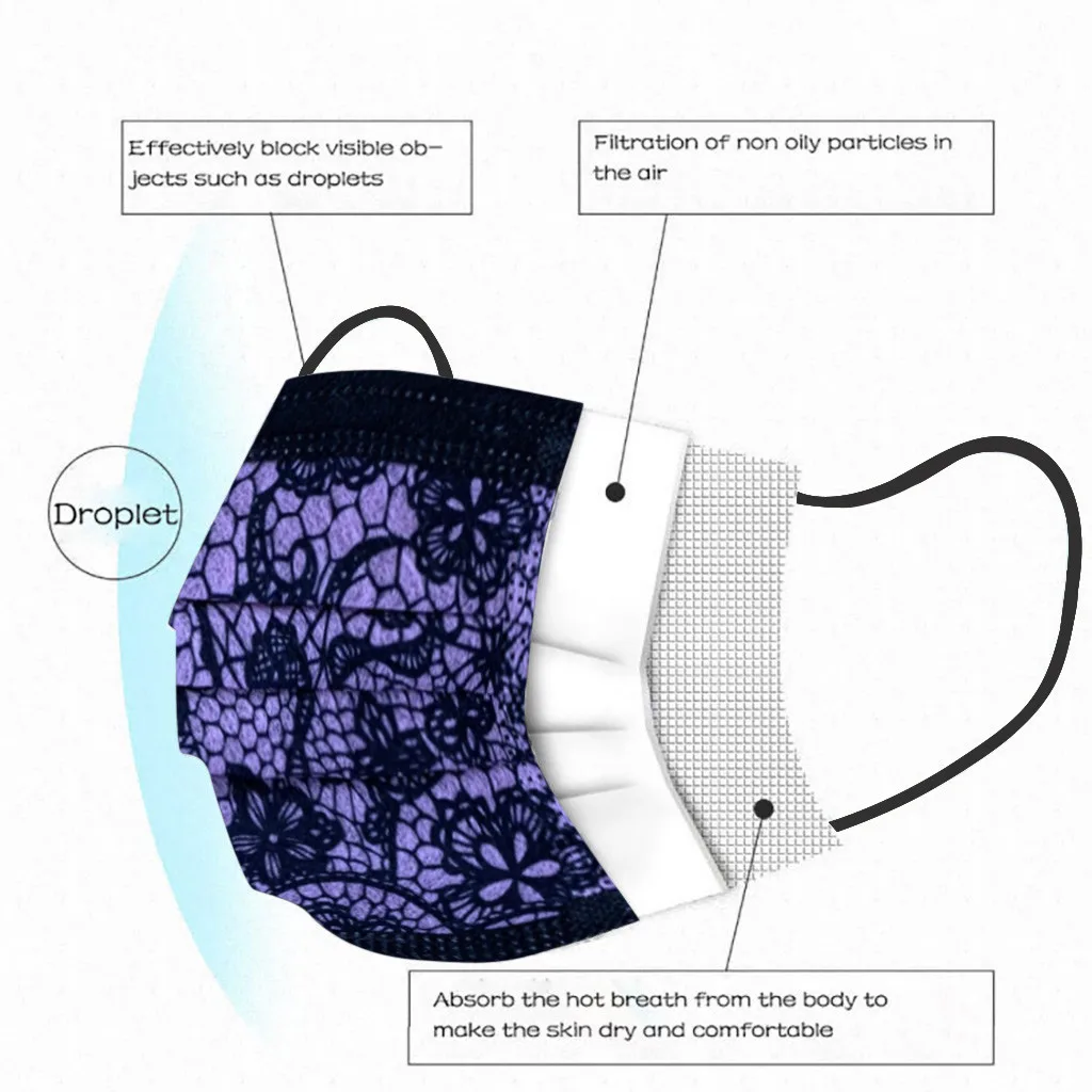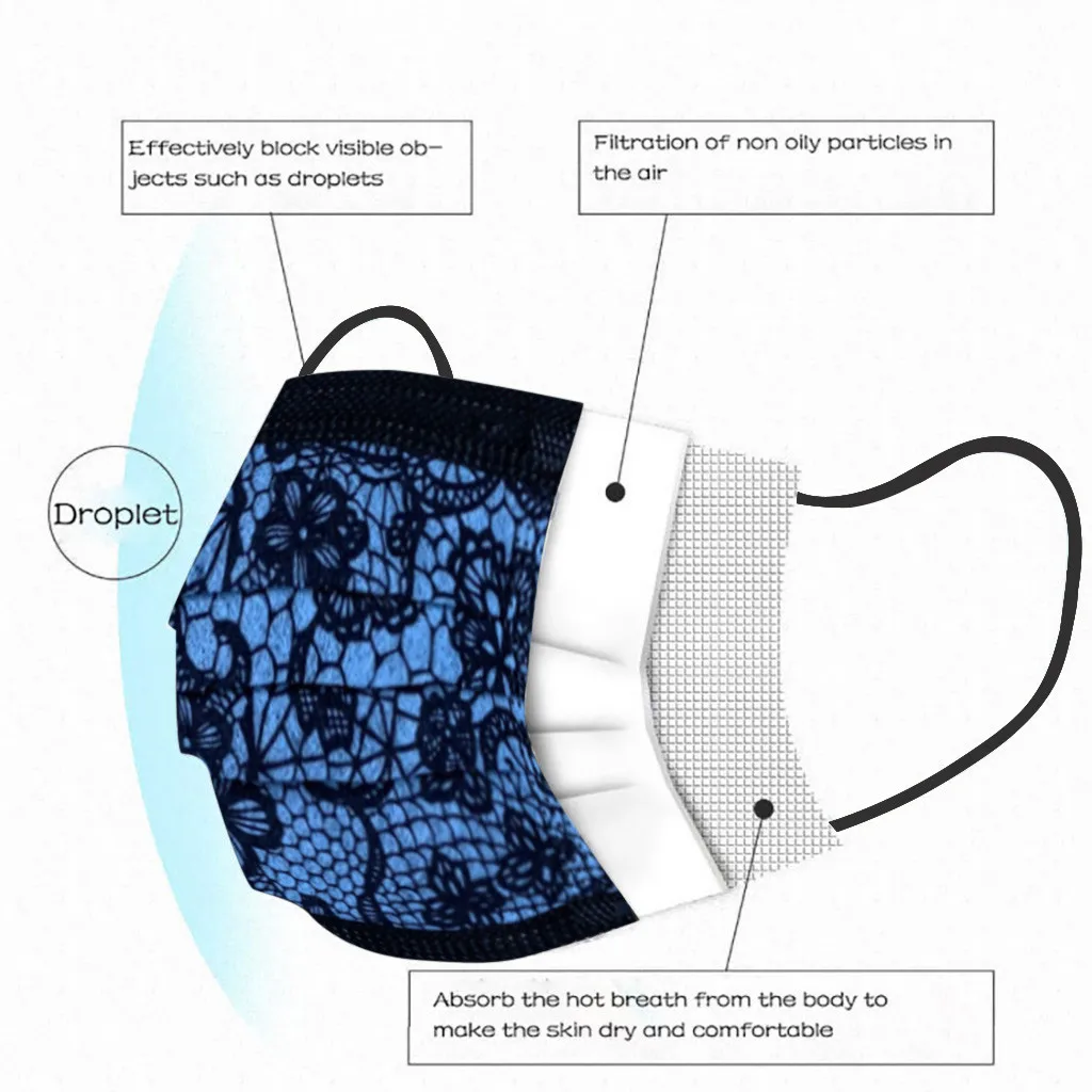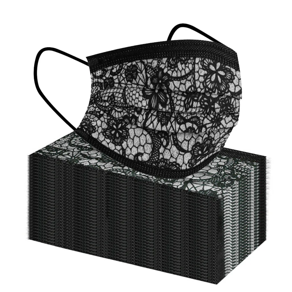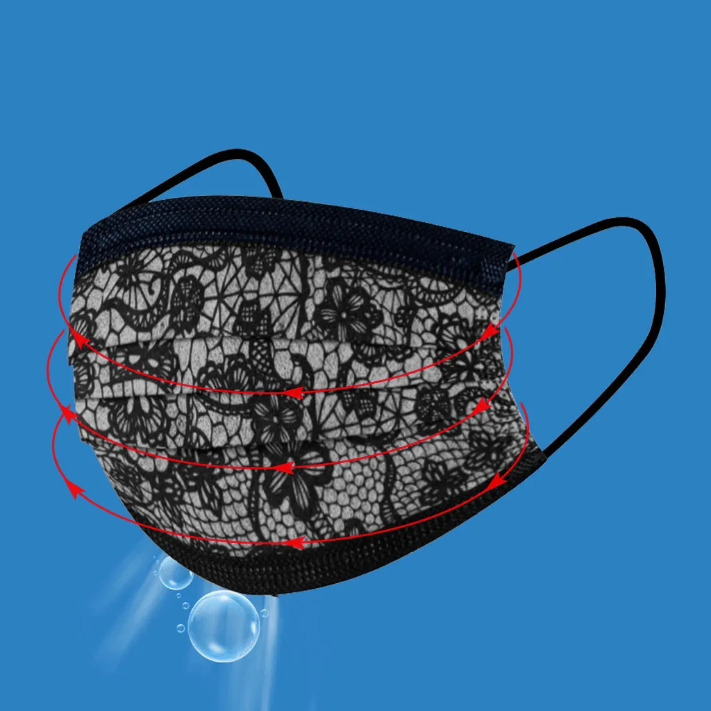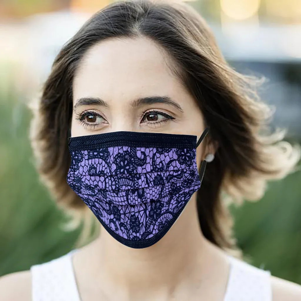 Маска одноразовая кружевная для лица из нетканого материала с 3-слойным фильтром, 50 шт.