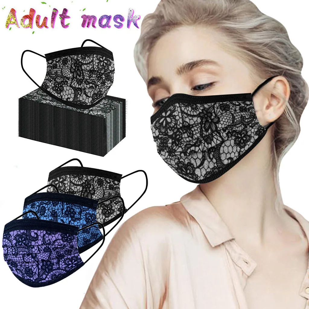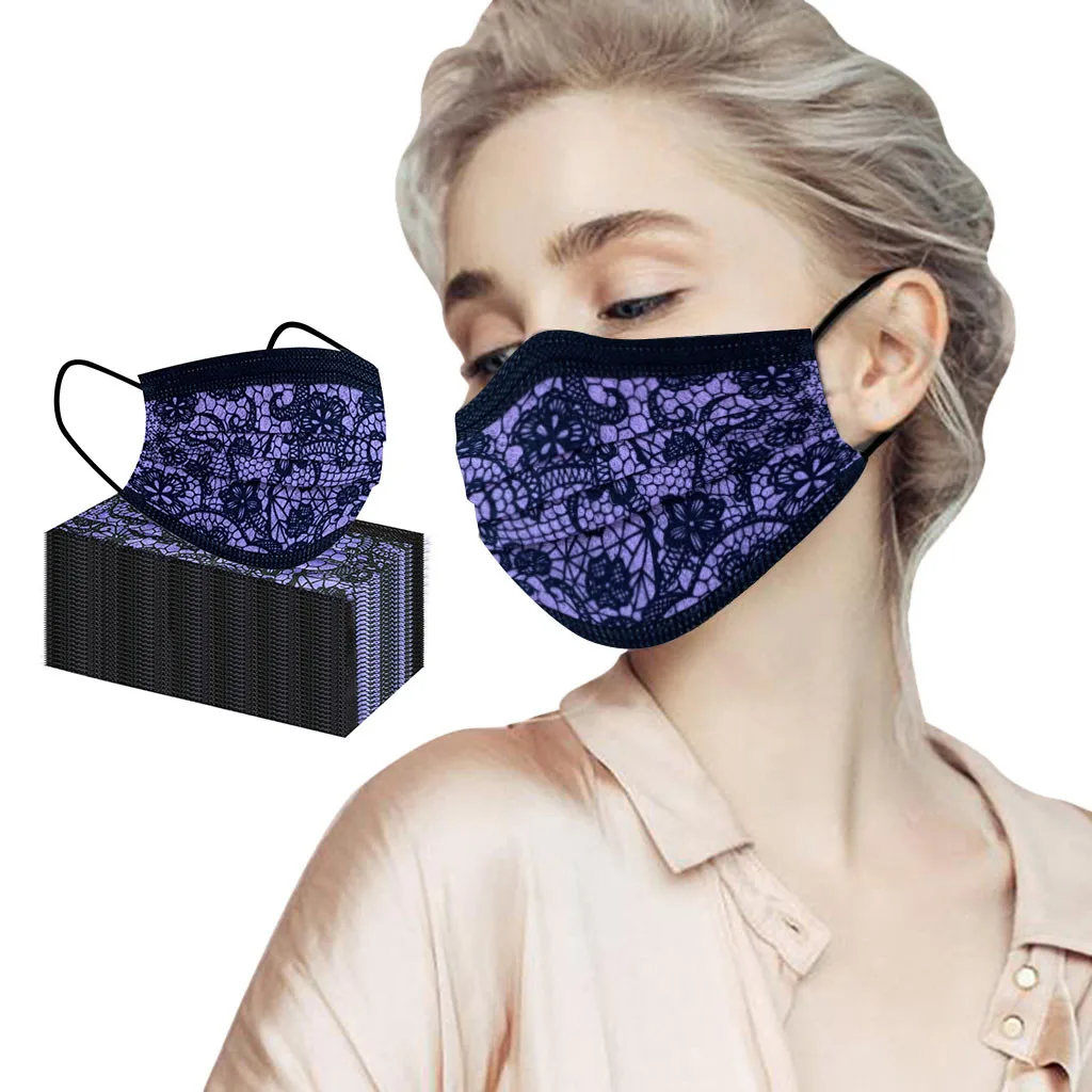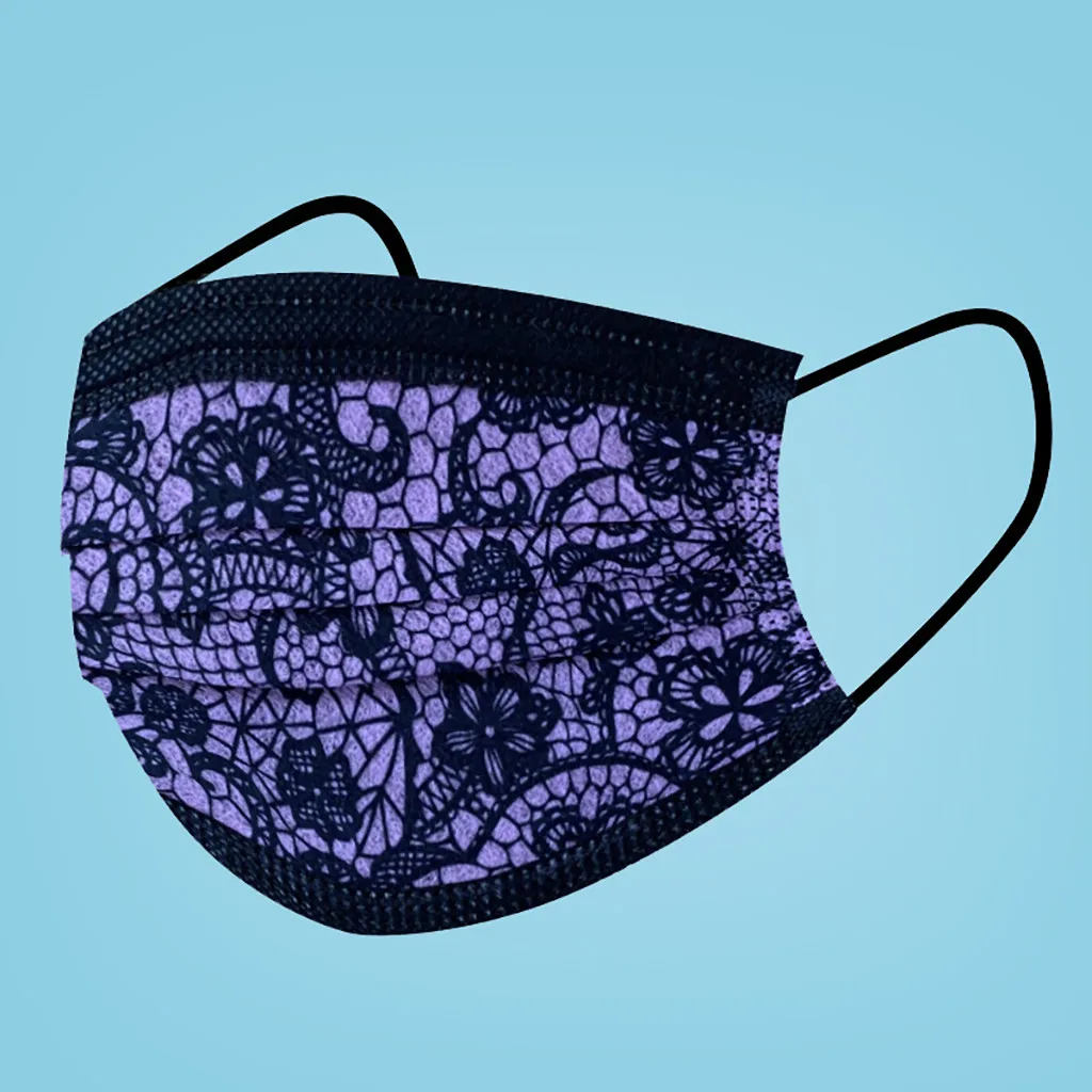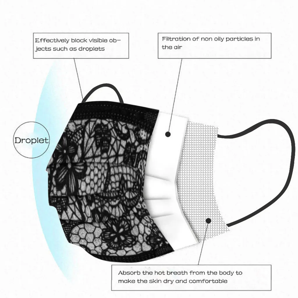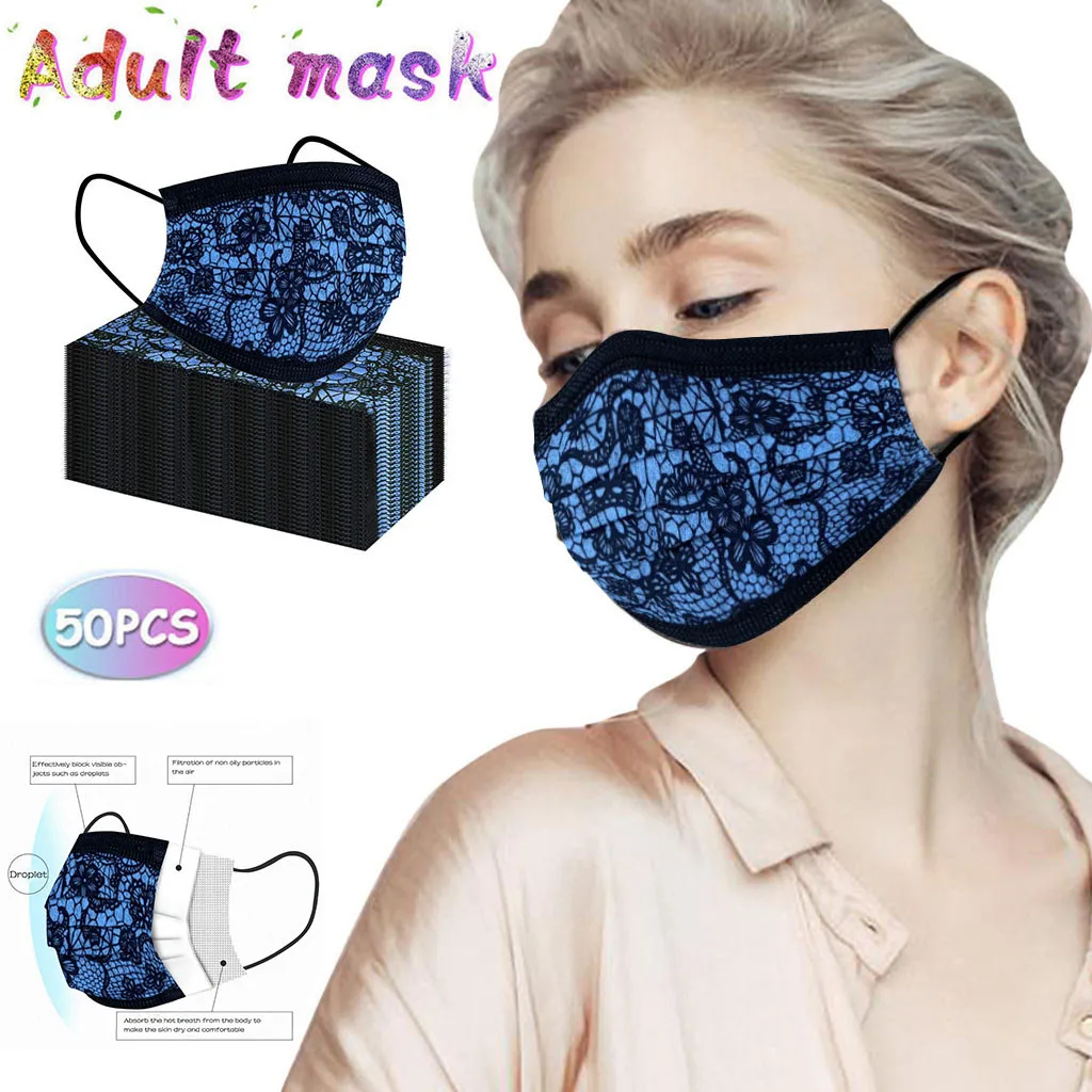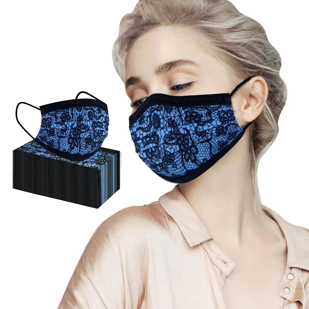 Маска одноразовая кружевная для лица из нетканого материала с 3-слойным фильтром, 50 шт.