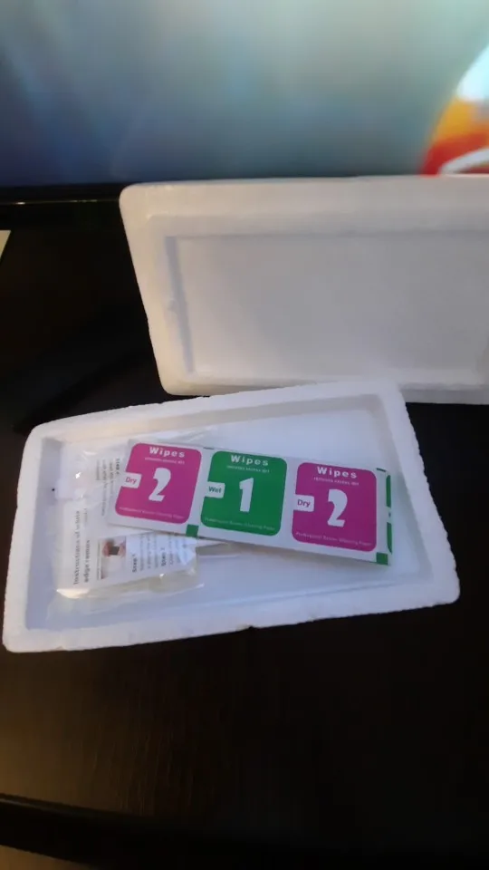 В первые мне пришел товар с Китая за 10 дней, ну это просто рекорд. Невероятно быстрая доставка, в комплекте 3 стекла, к каждому прилагается 2 пары салфеток и жидкость для удаления белых полос по бокам (как я поняла). После того как наклею стекло, дополню отзыв