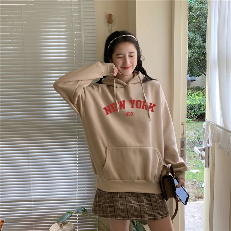 Женская толстовка с капюшоном, из 2020 хлопка, 8 цветов, утепленная, с принтом Нью-Йорка, на осень и зиму