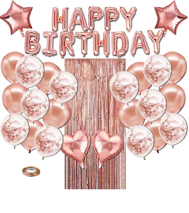 Набор декоративных шаров для дня рождения, розовое золото, 28 шт.