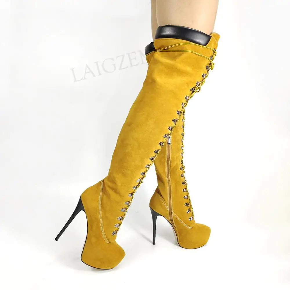 BERZIMER/женские Сапоги выше колена; Сапоги на платформе и высоком каблуке; Женская обувь унисекс на шпильке; Женская обувь; Большие размеры 39, 43, 44, 45, 47, 52