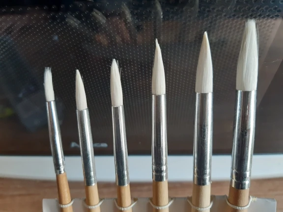 Nie są to pędzle wysokiej jakości jak w opisie ale za tą cenę nie ma co liczyć na super produkt. Do nauki wystarczające. Włosie trzyma się całkiem dobrze -jeszcze nie wypada. Są całkiem równo przycięte, mają w miarę cienki szpic. Są miękkie i chłonne. Nie były jakoś super zapakowane, ale też nie uszkodziły się w czasie transportu.