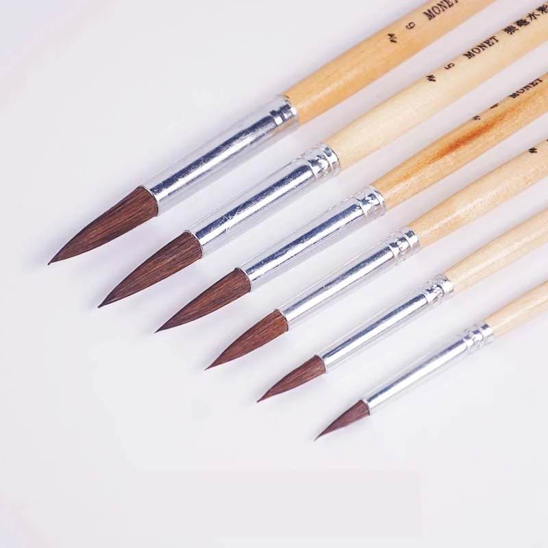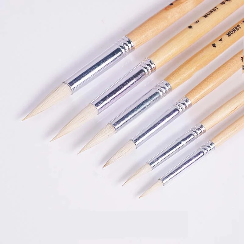 Кисти для рисования с деревянной ручкой, Набор круглых кистей для рисования акварелью для масляная Акриловая картина, товары для рукоделия для рисования