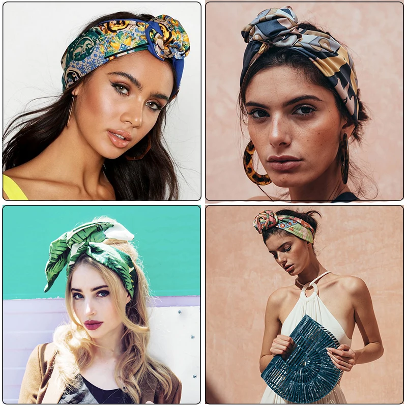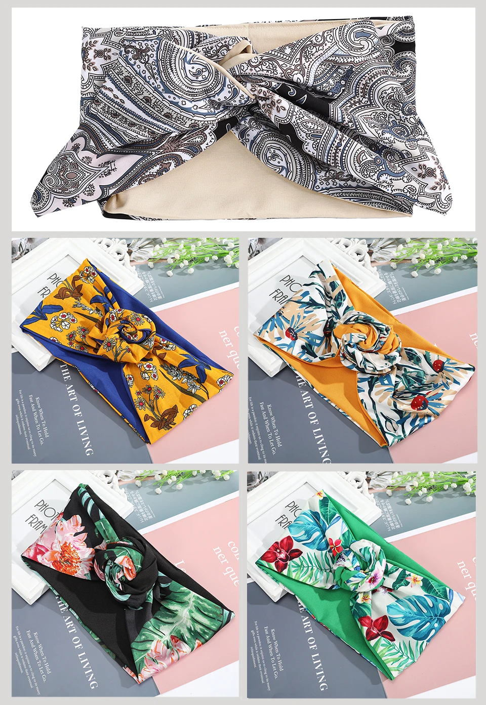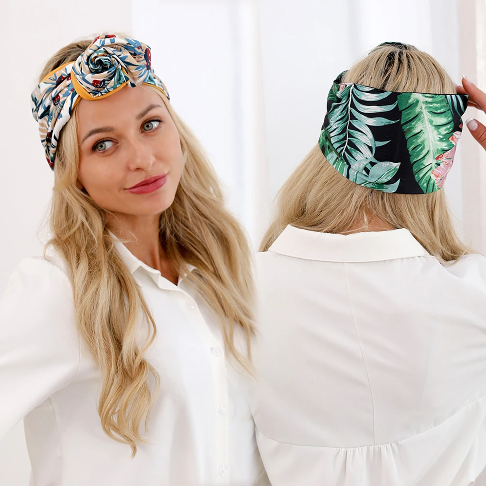 Винтажная богемная морская пляжная повязка для волос, зеленая повязка на голову с банановым листом, 3 стиля, эластичная повязка на голову с перекрестным узлом, аксессуары для волос для девочек, 1 шт.
