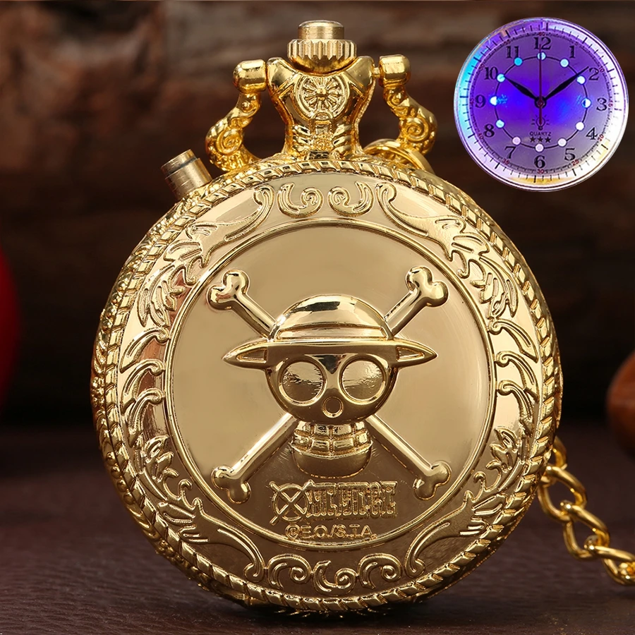 Светящиеся светодиодные карманные часы, японские Мультяшные аниме цельные карманные часы, цепочка, винтажные часы с подвеской в стиле стимпанк