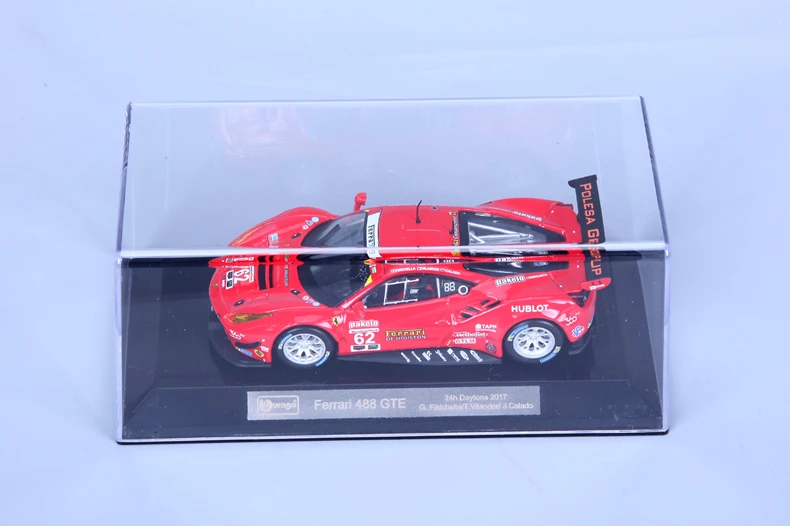 Новинка, модель автомобиля Bburago Ferrari 488 GTE 1:43, игрушечный автомобиль из литья под давлением, коллекционная статическая модель, предназначенная для Le Mans, раллийный автомобиль