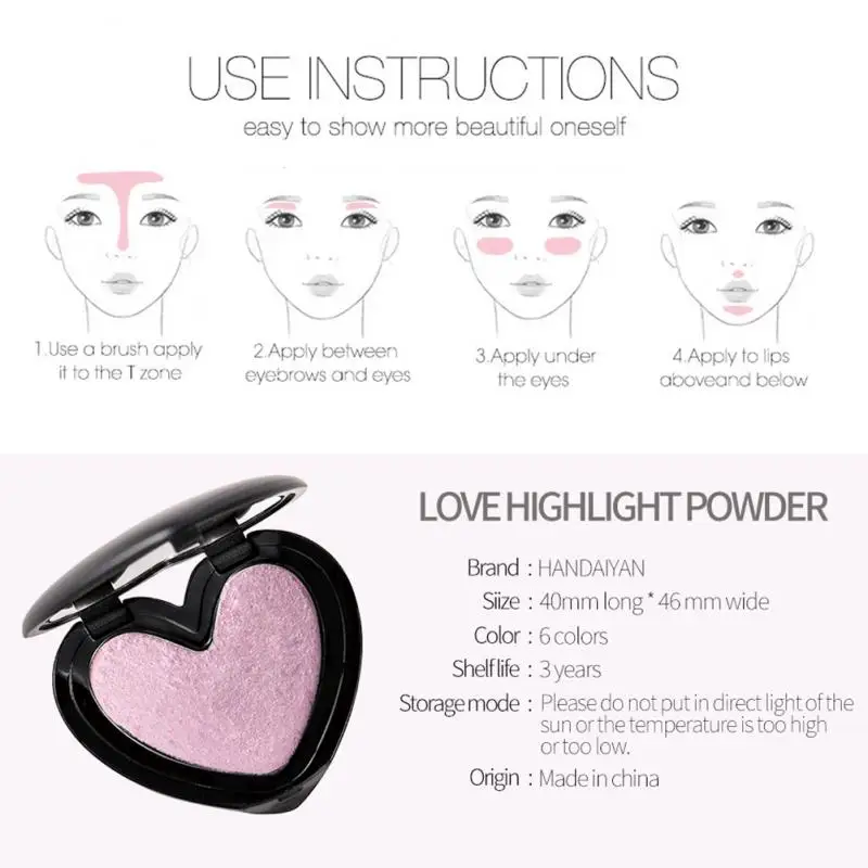 Корректор для макияжа HANDAIYAN в форме сердца, румяна, Мерцающая к...