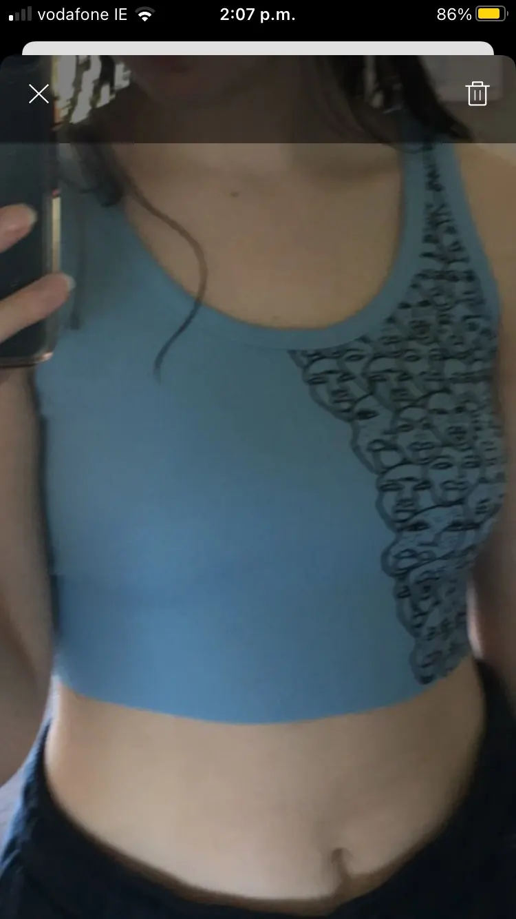 Really nice top, arrived so quickly! Would recommend sizing up though, I’m normally size 6/8 and the S was really tight on me