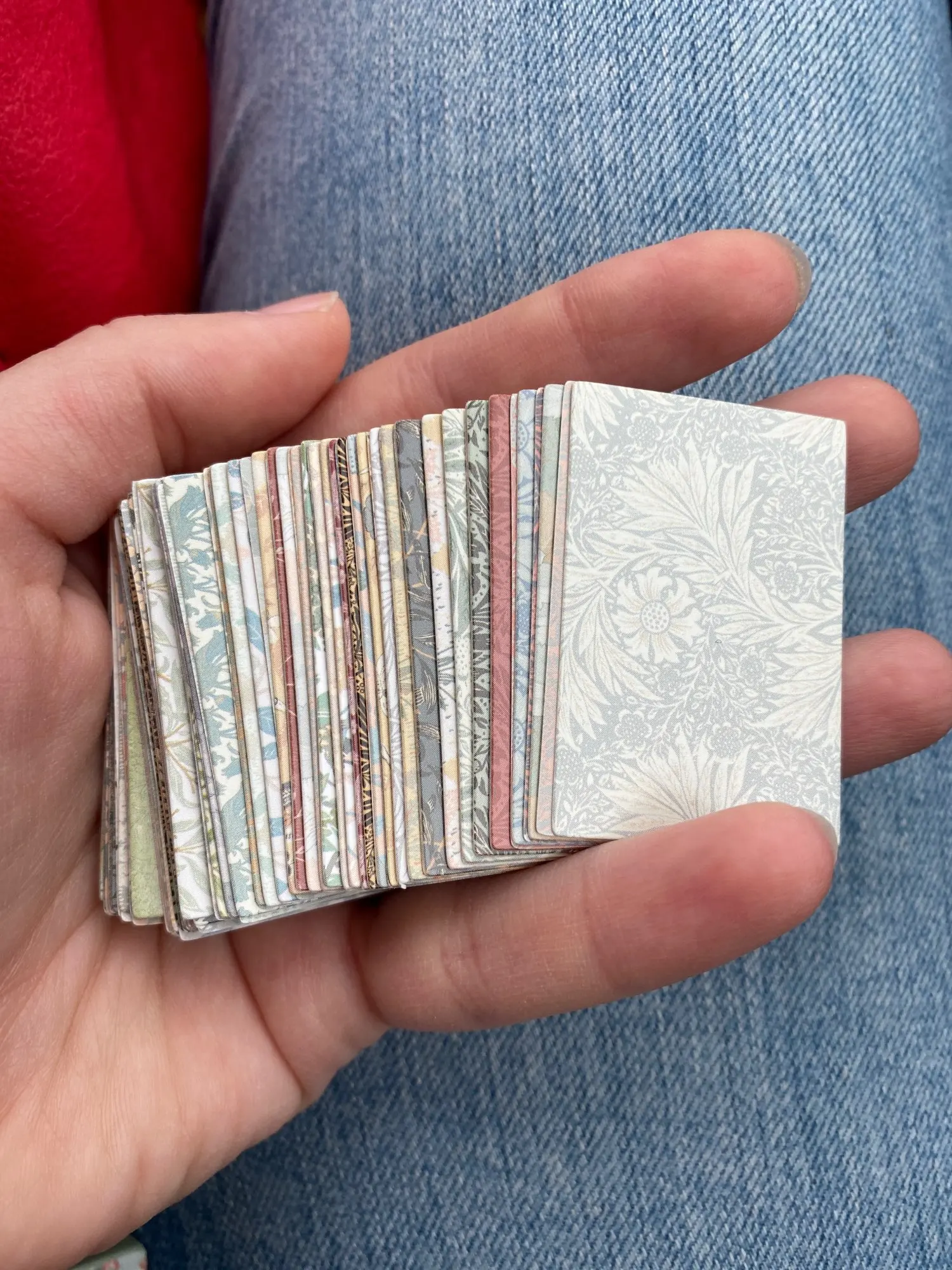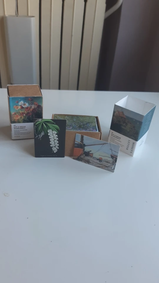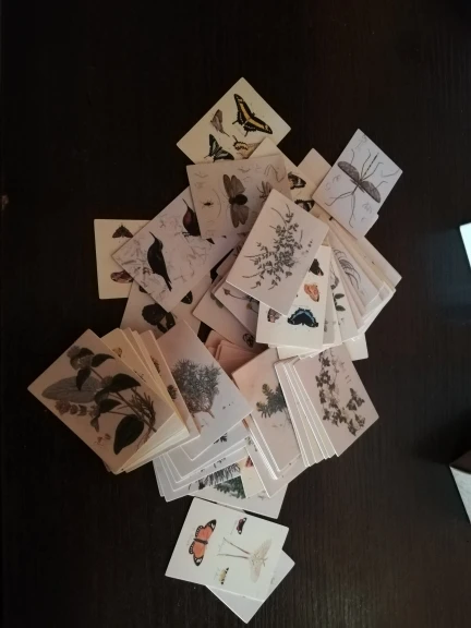 Заказ прибыл невероятно быстро (Доставка в Польшу обычно занимает около 3-4 месяцев, и это подошло до месяца), и это отличное качество. Маленькие карты двухсторонние, с одной стороны есть растительные конструкции и на других животных, таких как жуки и птицы. Небольшая надпись на них слишком маленькая, чтобы читать, но за эту цену качество по-прежнему отличное. Идеально подходит для журналов любого вида. Он также пришел в милую маленькую коробку, идеально подходит для хранения. Определенно рекомендую купить