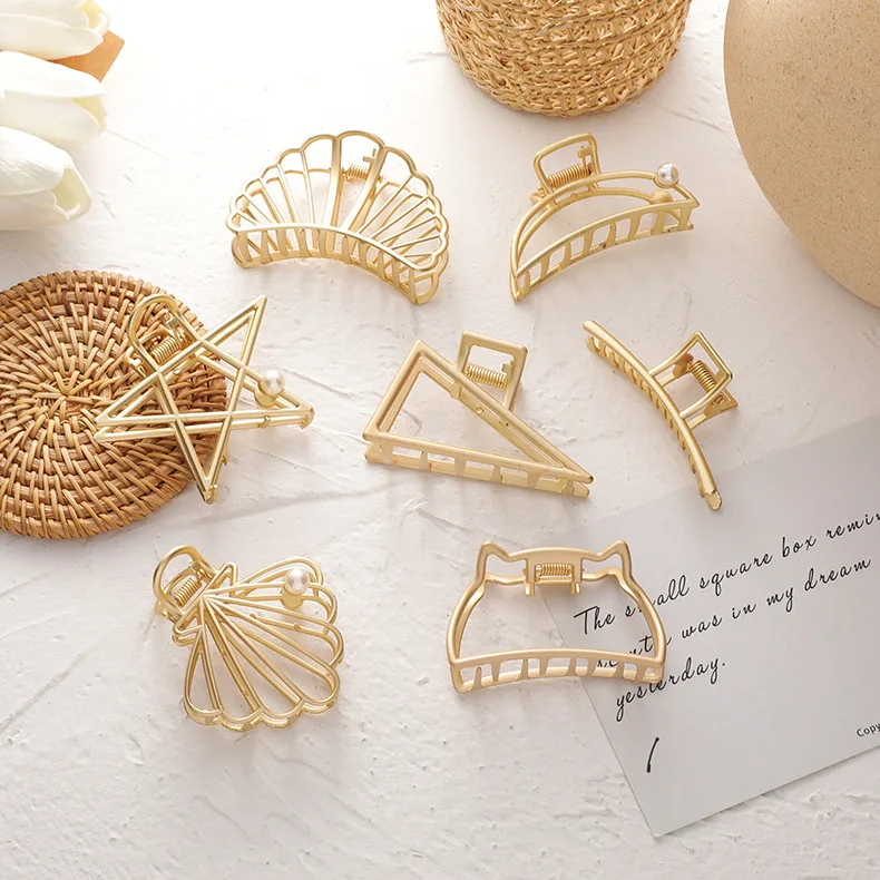 Заколка для волос HUANZHI для женщин и девочек, металлическая заколка с геометрическим узором в виде акулы, звезды, ракушки, жемчужины, большие аксессуары для ванной, 2020