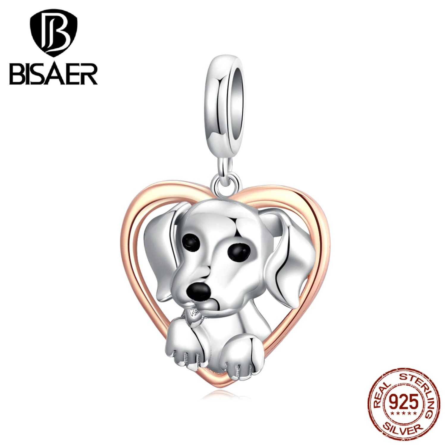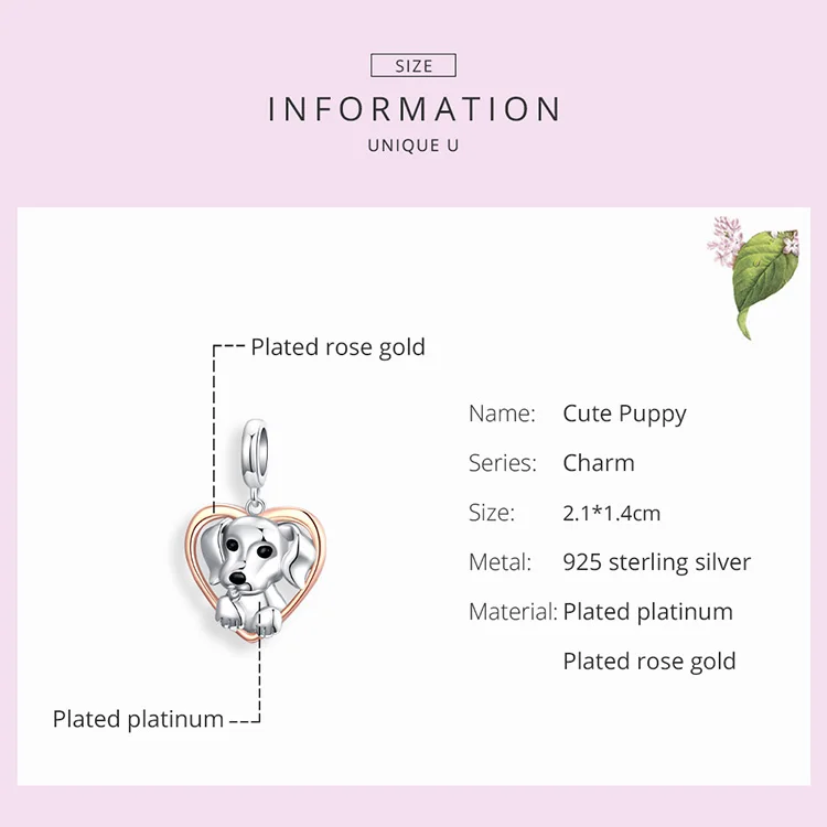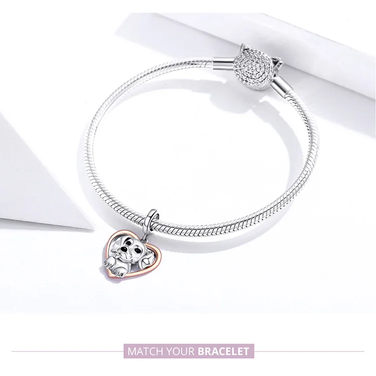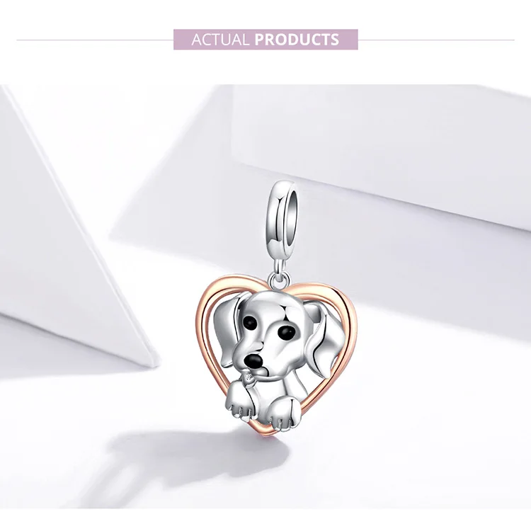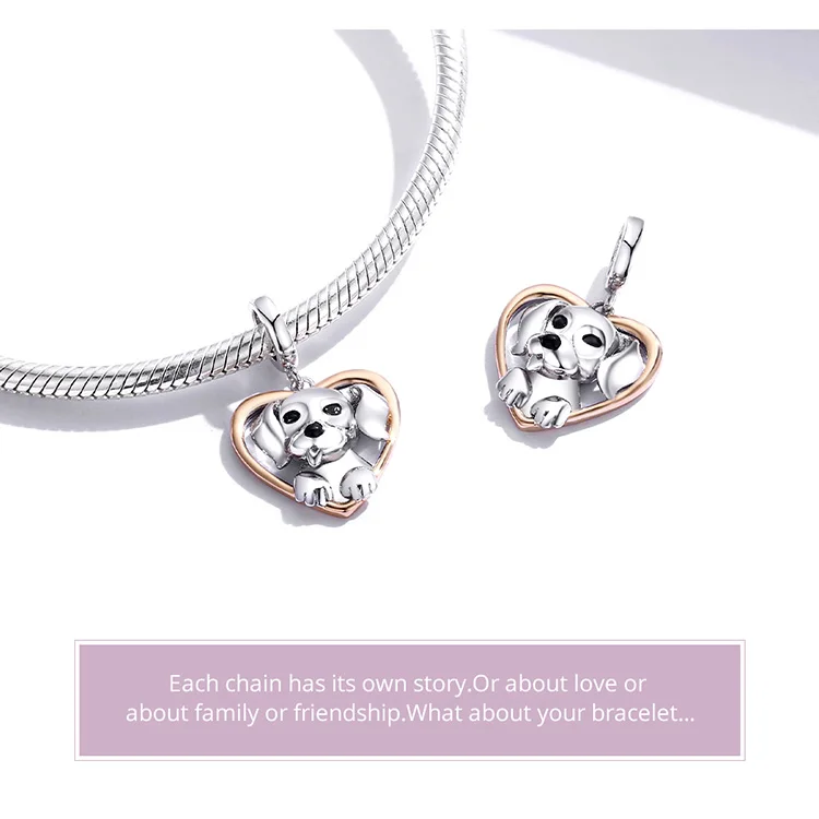 WOSTU Friendliness Dog Charm 925 Sterling Silver Heart Bead Animal ...