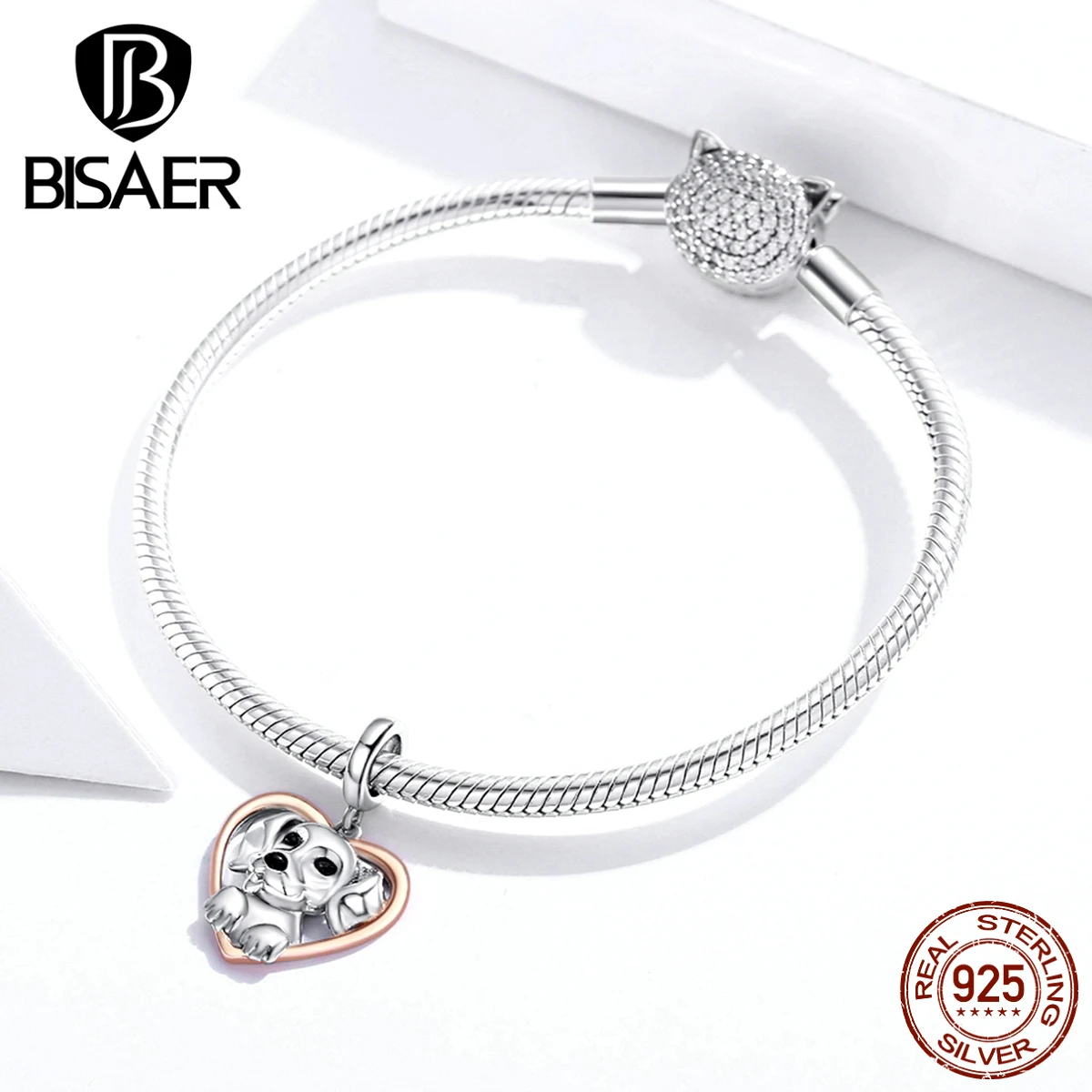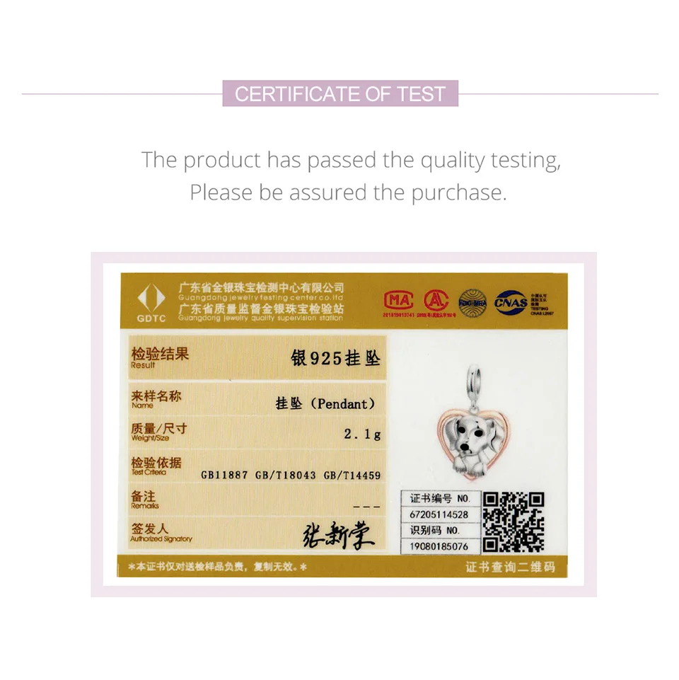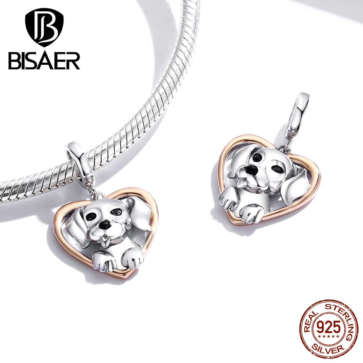 WOSTU Friendliness Dog Charm 925 Sterling Silver Heart Bead Animal ...