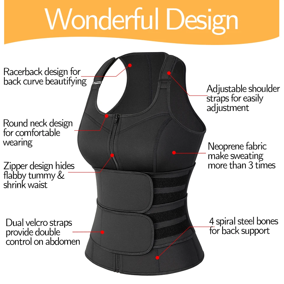 · Цвет: черный· Материал: Корпус: полиэстер 100%; Ядро: Neoprene100 %· Размер: S,M,L,XL,2XL,3XL· Кости: 4 Стальные Кости·❤Специальный дизайн❤-Наш жилет с корсетом на молнии оснащен застежкой-молнией и двумя ремнями на липучке и 2 регулируемыми лямками на плечах, чтобы вы могли поместиться в него как можно больше и придать вам пикантную естественную изгибу.·❤Собирайте и нажимайте грудь❤-Специальный дизайн передней части u-шеи, который удерживает вашу грудь, делает вашу грудь более упругой и привлекательной, эффективно контролирует подмышку и заднюю дряблость, чтобы сделать ваше тело без комочков, ударов или громоздких. Его можно носить с любым обычным или спортивным бюстгальтером, придавая Вам красивую фигуру в виде песочных часов.·❤Эффективный Пояс CINCHER❤-- Наш формирователь тела помогает послеродовому восстановлению весь процесс, уменьшает отеки, затягивает кожу, контроль животика и спины, облегчение послеродовой боли, облегчает переход матки и сокращает ее до нормального размера, вернитесь к своей оригинальной форме.·❤Легкий, удобный и быстросохнущий❤-- Изготовлено из трех слоев Неопреновая композитная ткань с 2,3 мм толщина, делает это потеря веса cincher легче и удобнее, чем раньше, легче скрыть под повседневную одежду, но позвольте двигаться с вашим телом во время выполнения любой активности в тренажерном зале, впитывает пот и позволяет всегда сушить снаружи.·❤Форма и определение вашей талии❤-Наш корсет с двойным слоем с высоким сжатием, внутренний слой с застежкой-молнией позволяет регулировать сжатие, которое вам нужно, и работает как пояс, чтобы сгладить живот мгновенно, И внешний слой с двумя ремешками на липучке скрывает выпуклости на животе, чтобы создать Гладкий живот, Улучшите свою тренировку и подрежьте талию, чтобы она выглядела стройнее.·❤Увеличение сжигания жира❤-- Неопреновый жилет работает как костюм для сауны. Неопреновый материал помогает повысить температуру тела и сохранить тепло тела, как сауна вокруг живота, что делает вас потеть в 3 раза больше, чем когда-либо прежде, и увеличивает сжигание калорий для более эффективной тренировки. Это также помогает сжигать жир в животе, талии и спине, помогая вам потерять несколько дюймов за короткий период времени, легче и быстрее достичь эффекта похудения.·❤Поддержка спины и контроль осанки❤-Этот тренажер для тела также действует как компрессионный Биндер вокруг талии, чтобы обеспечить сжатие живота и поясничную поддержку для улучшения осанки и облегчения боли в талии и защиты позвоночника.·❤Подходит для любой программы потери веса❤-- Наш женский жилет для сауны может полностью покрыть ваш нижний живот! Лучше всего подходит для zumba, yoga, тренажерного зала, фитнеса, бега, велоспорта, бокса, укрепления мышц, сжигания жира и похудения, уменьшения живота и изменения фигуры.