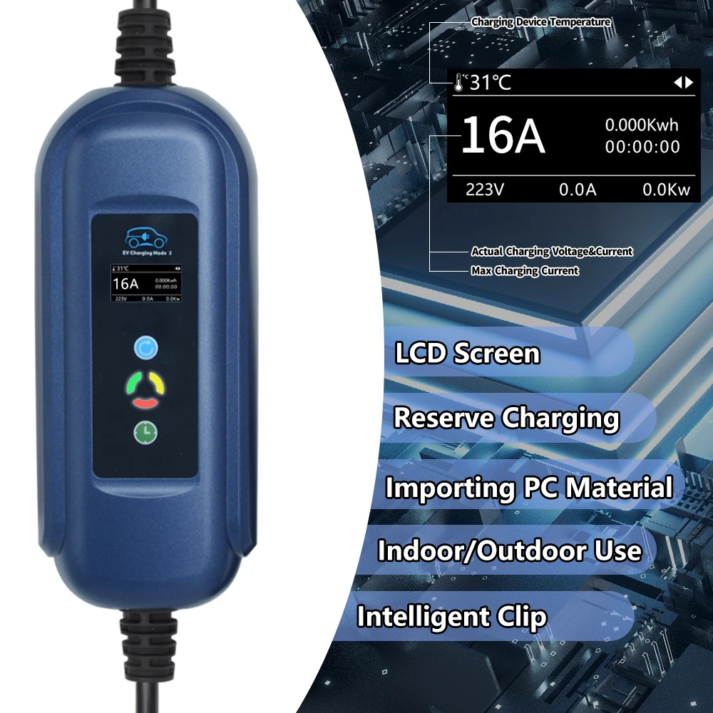 16А ЕС стандартный регулируемый портативный EV зарядное устройство