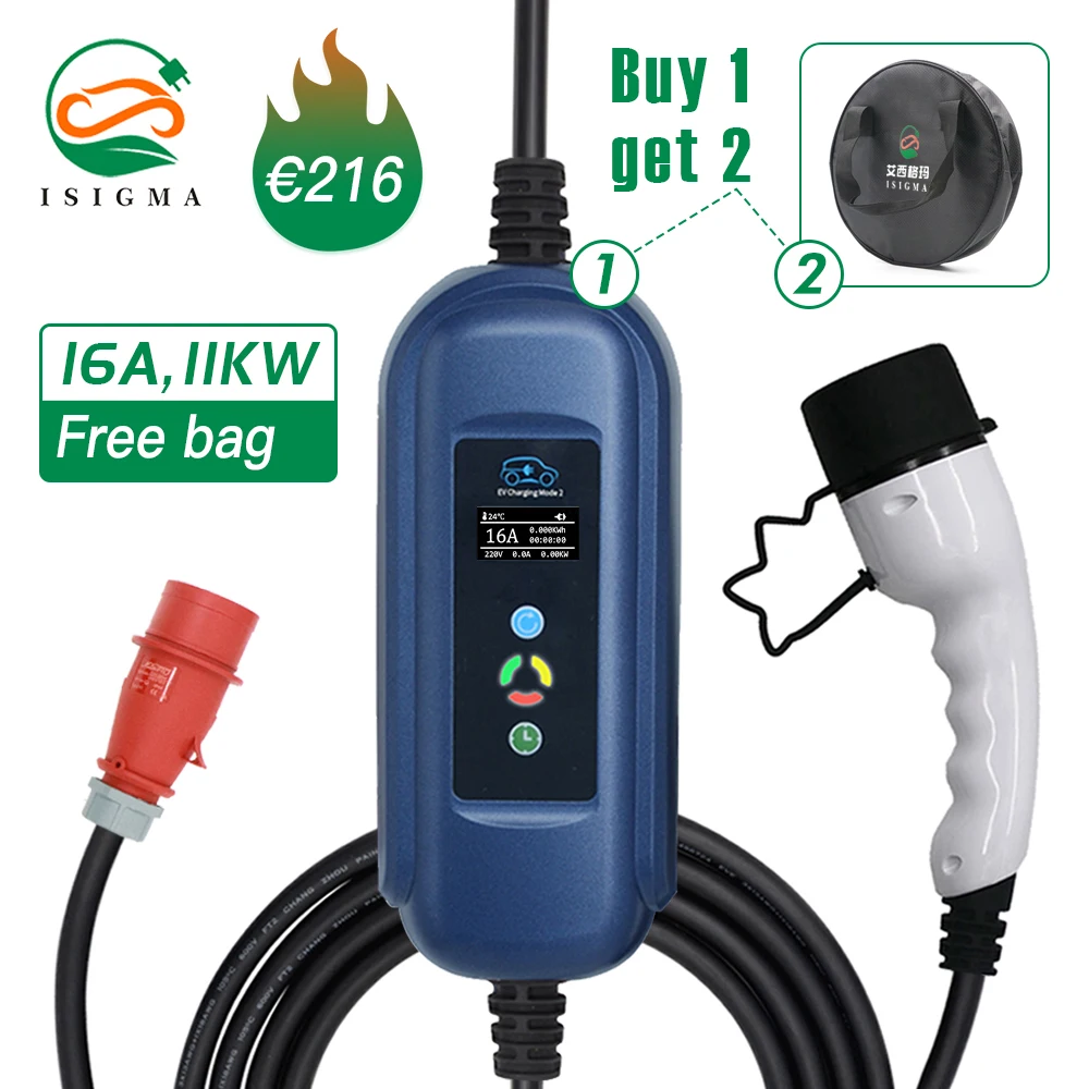 11 кВт 3P мобильное зарядное устройство для электромобилей Wallbox 16 А быстрое зарядное устройство для электромобилей IEC62196 Тип 2 CEE 5 контактов электрическое автомобильное зарядное устройство EVSE зарядное устройство для автомобиля