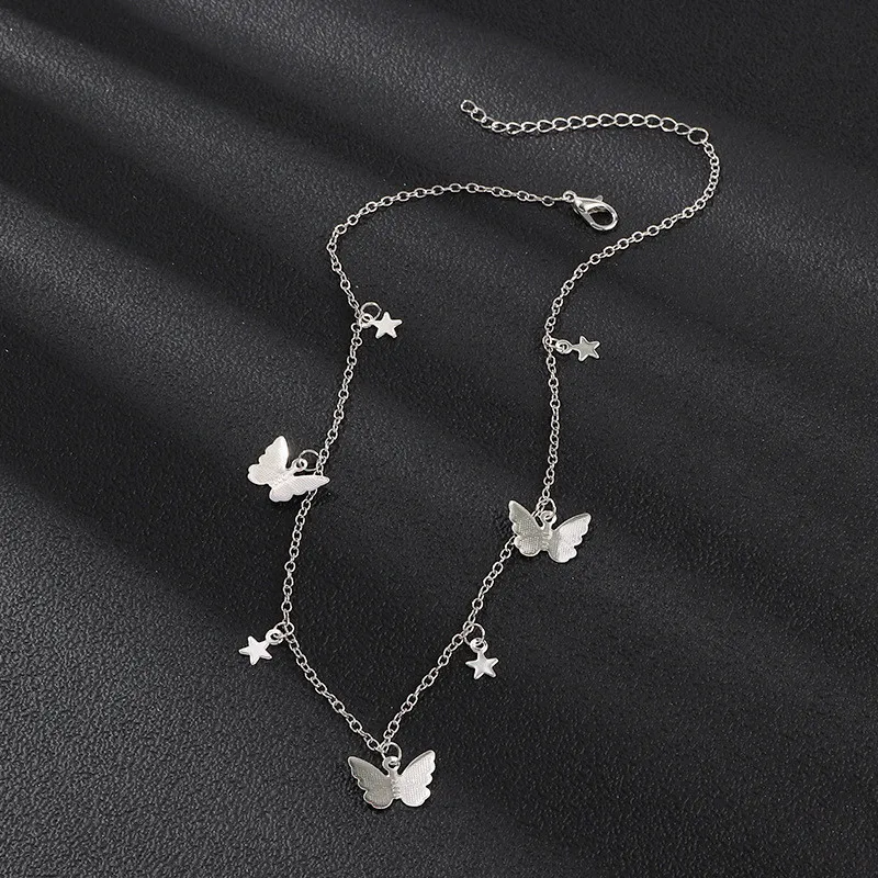 Очаровательная бабочка цепь со звездами ожерелья для женщин Горячая Распродажа Золотой Серебряный цвет ключицы цепь Чокер ожерелья ювелирные изделия аксессуары