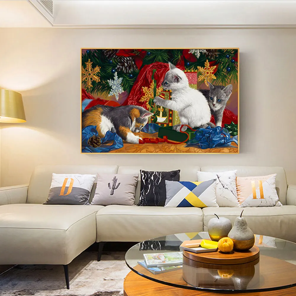 Наборы для вышивки крестиком наборы для рукоделия 11CT водорастворимые картины из холста 14CT рождественские животные кошка игра-NCMC066